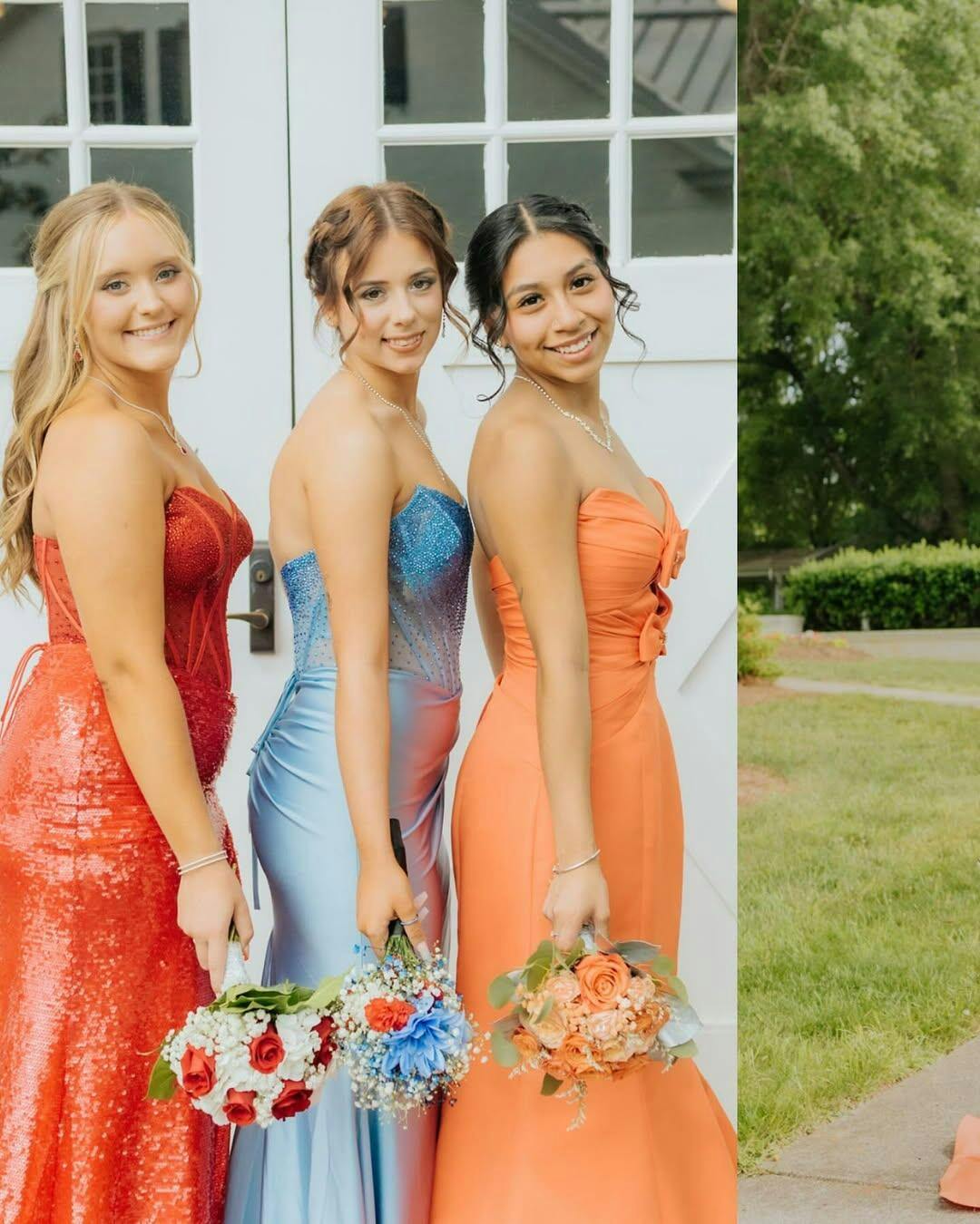 This satin prom gown features cut front on the bodice. The strapless maxi dress has a V-neckline and ruffle hem. This long formal dress is ideal for party, evening or festivals.