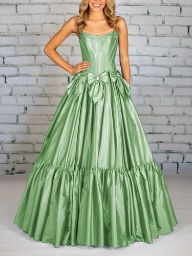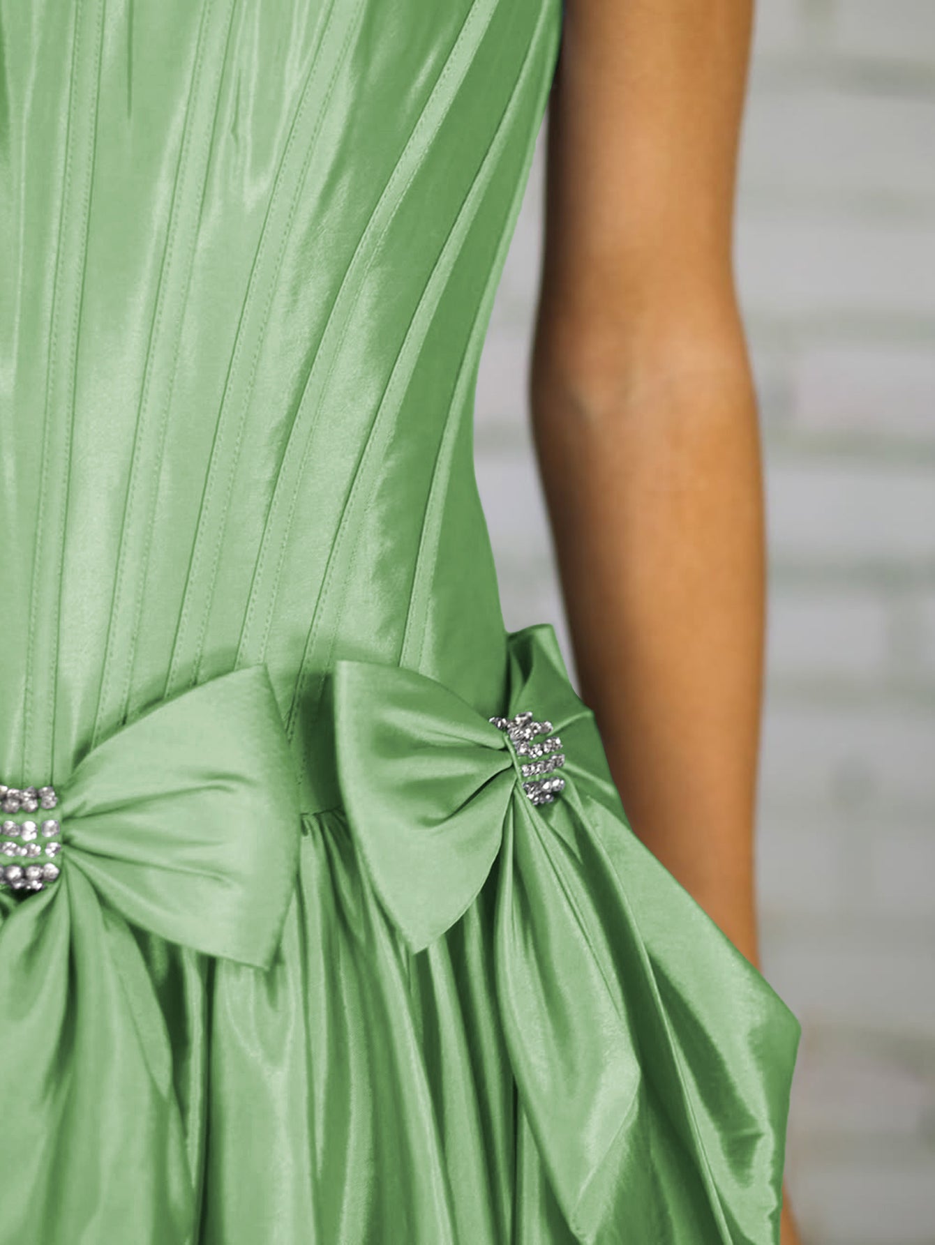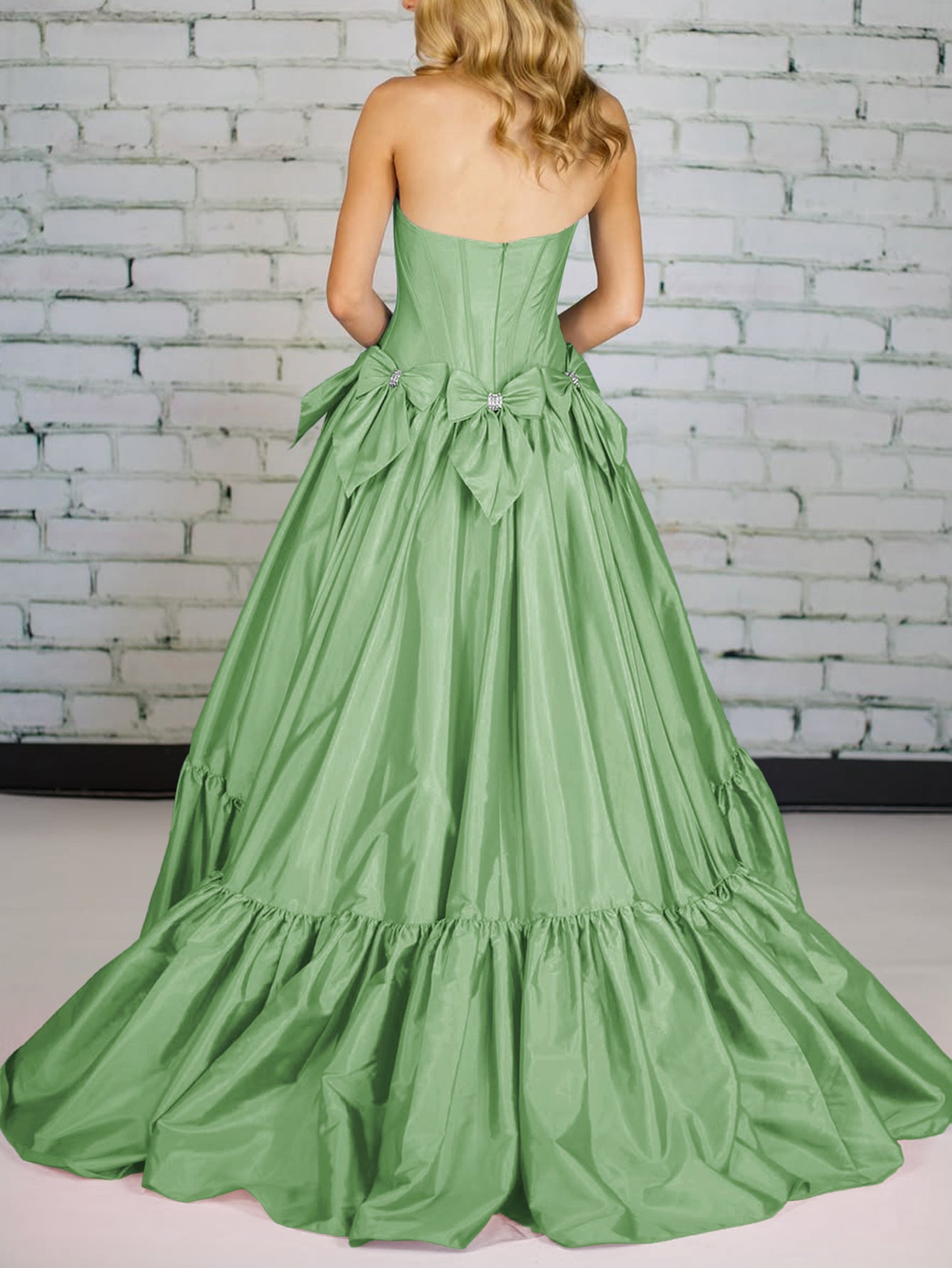 Crystal Boned Strapless Ball Gown Prom Dress With Bow - Sage Green
