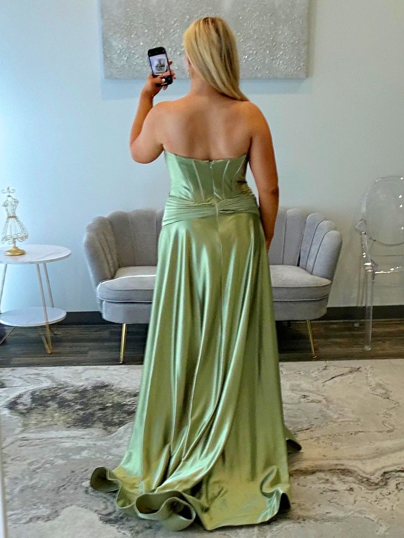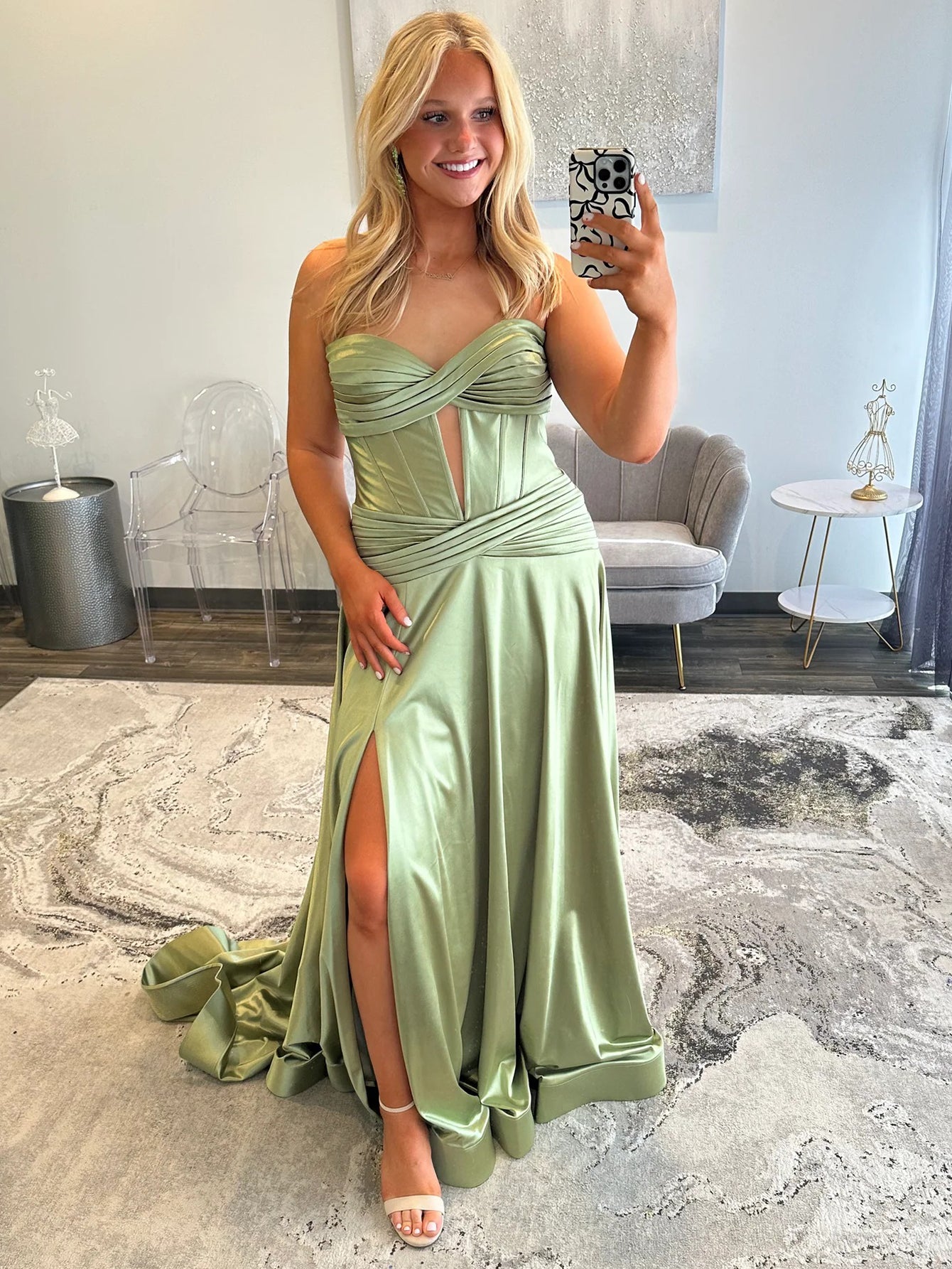 Pleated A-Line Cut Front Prom Dress Long - Sage Green