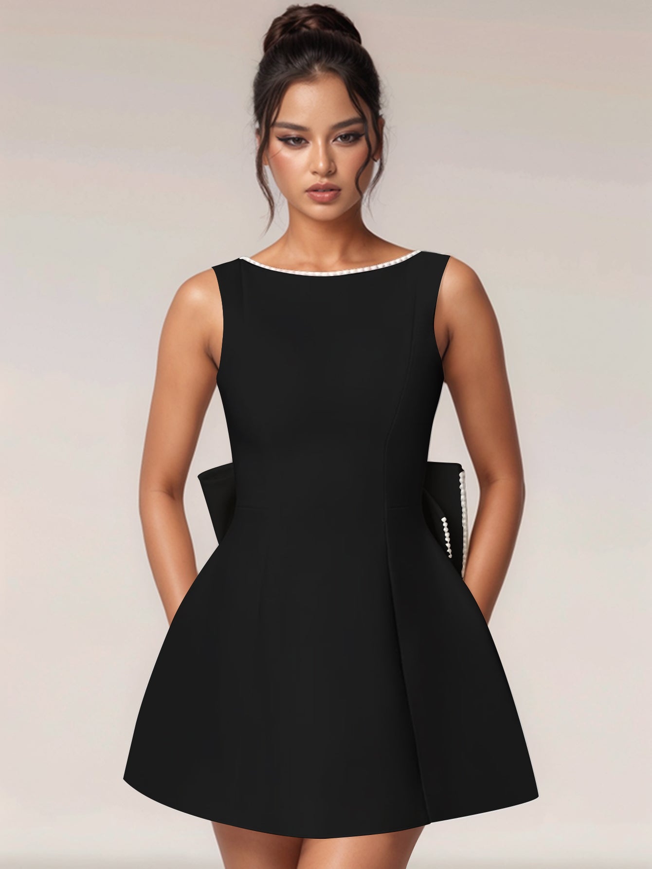 Hand Beading Backless Bow Ball Gown Prom Bridal Mini Dress - Black