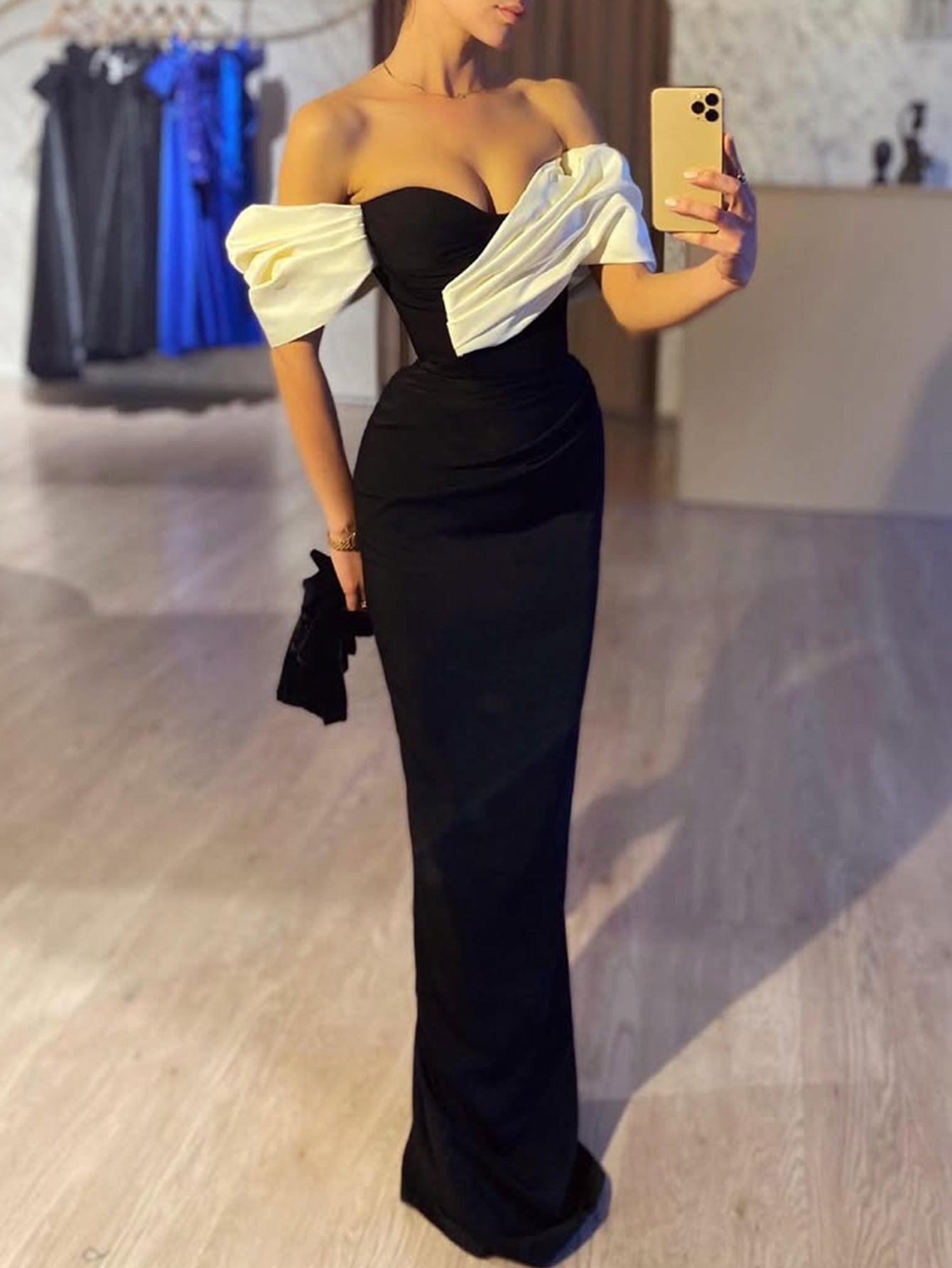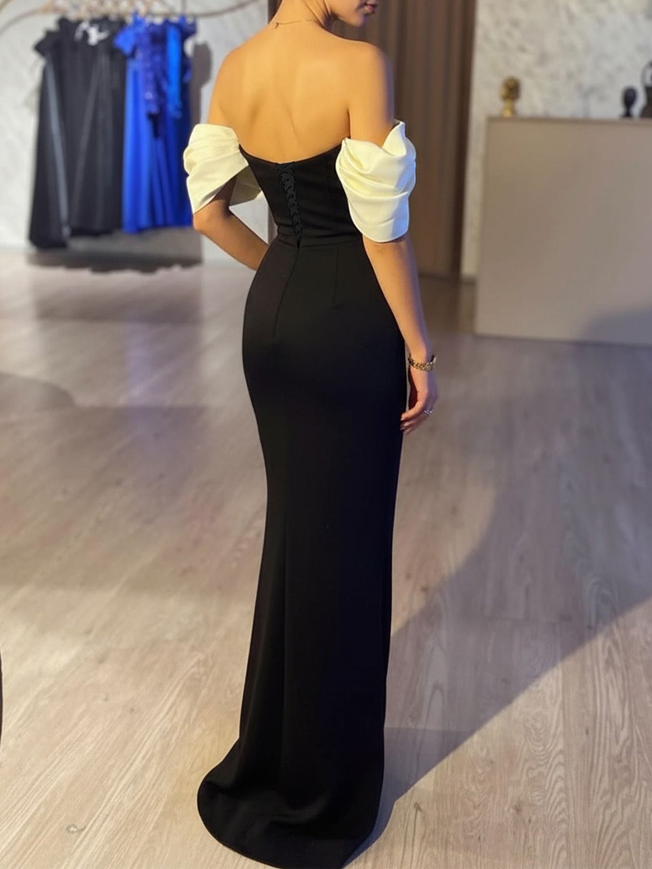 Off Shoulder Backless Sheath Long Prom Dress - Black
