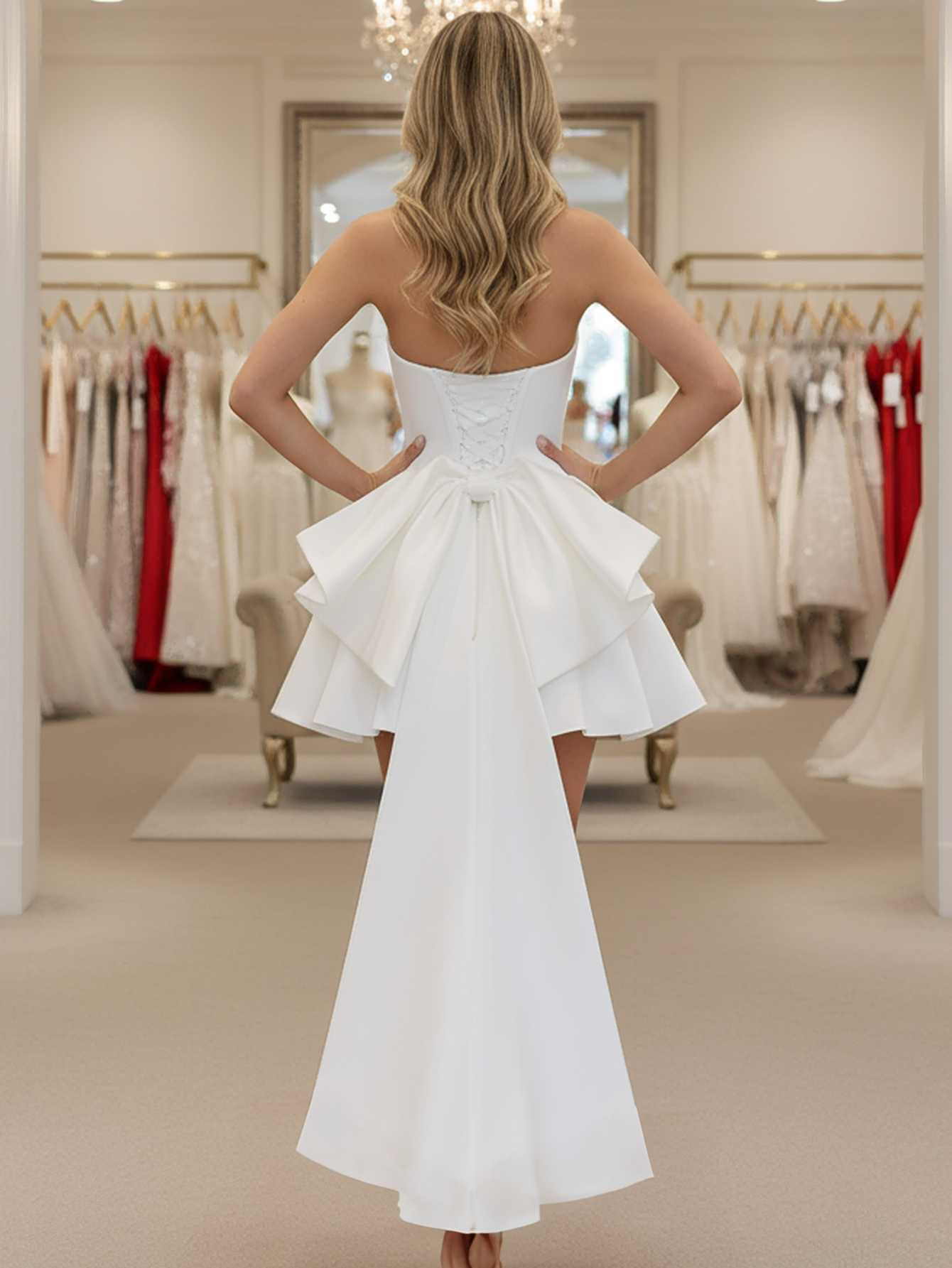 Removable Big Bow Bridal Prom Mini Dress - Ivory