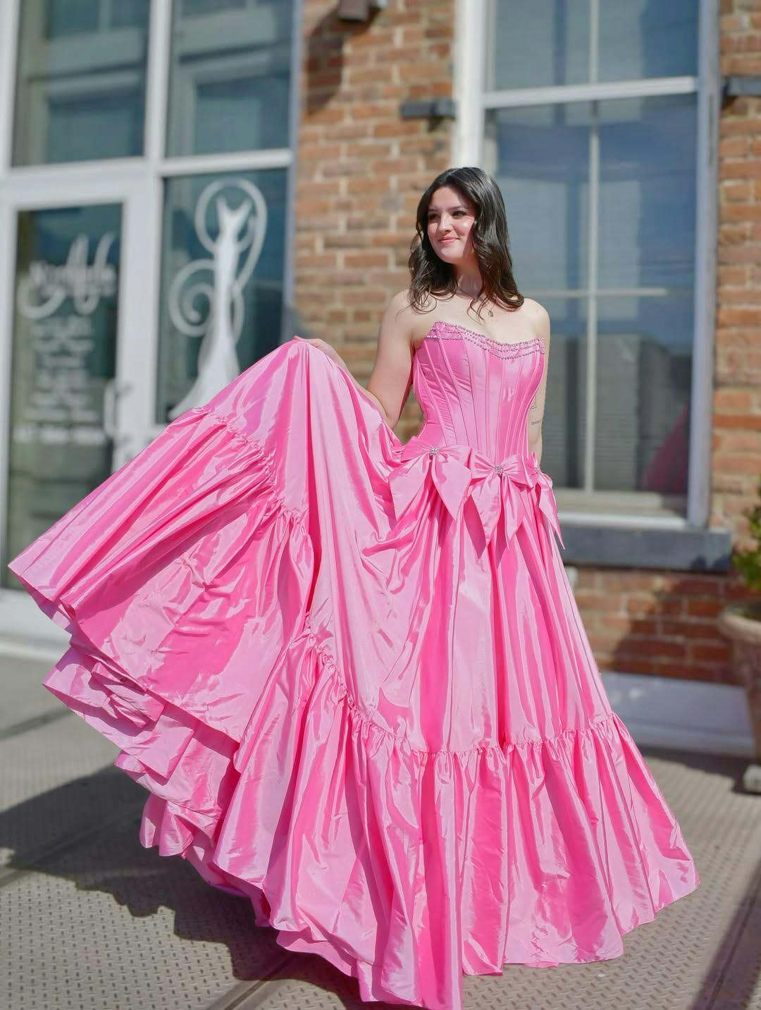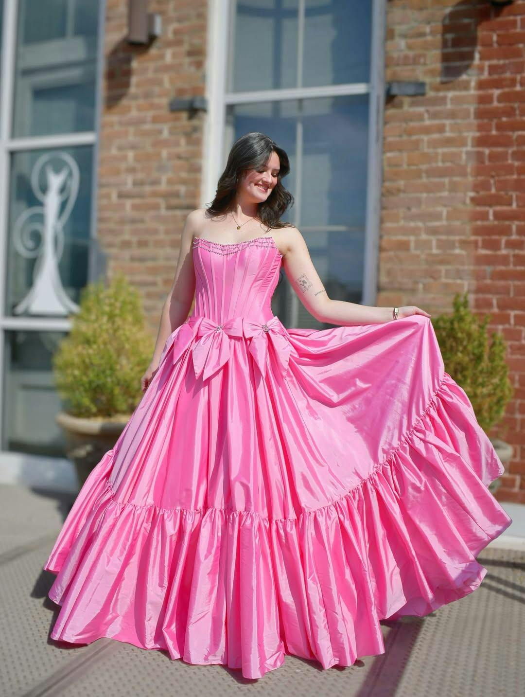 Crystal Boned Ball Gown Prom Dress With Bows - Hot Pink