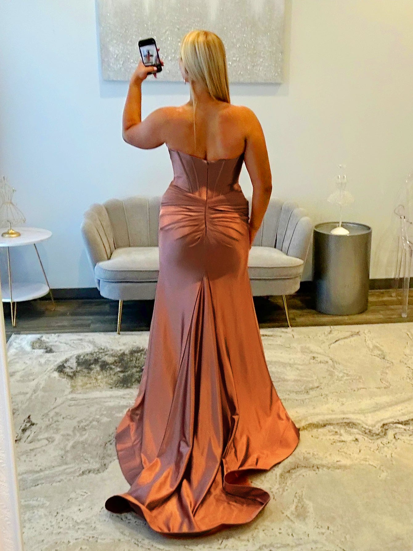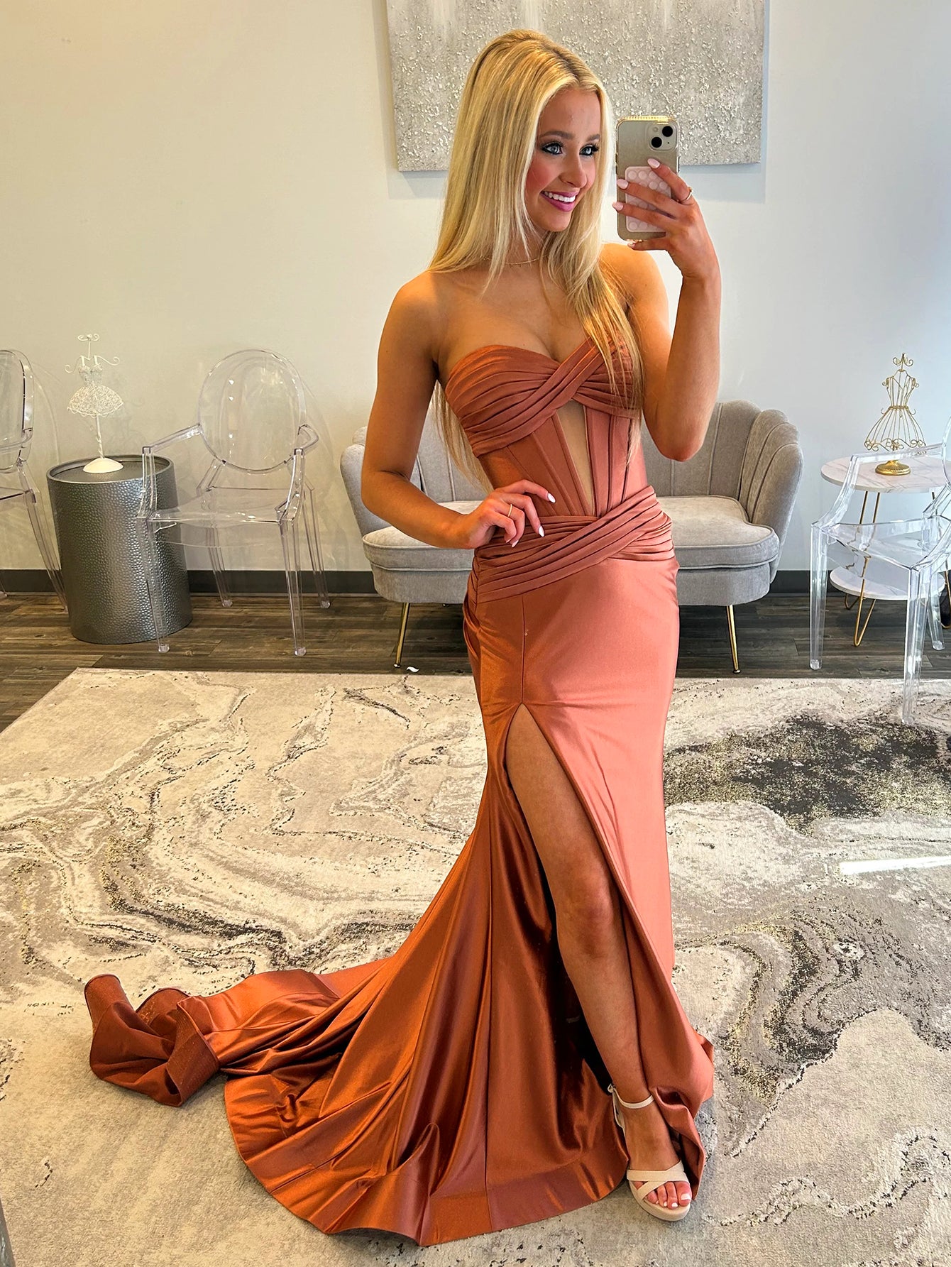 Cut Front Pleated Mermaid Prom Dress With Split - Rose Gold