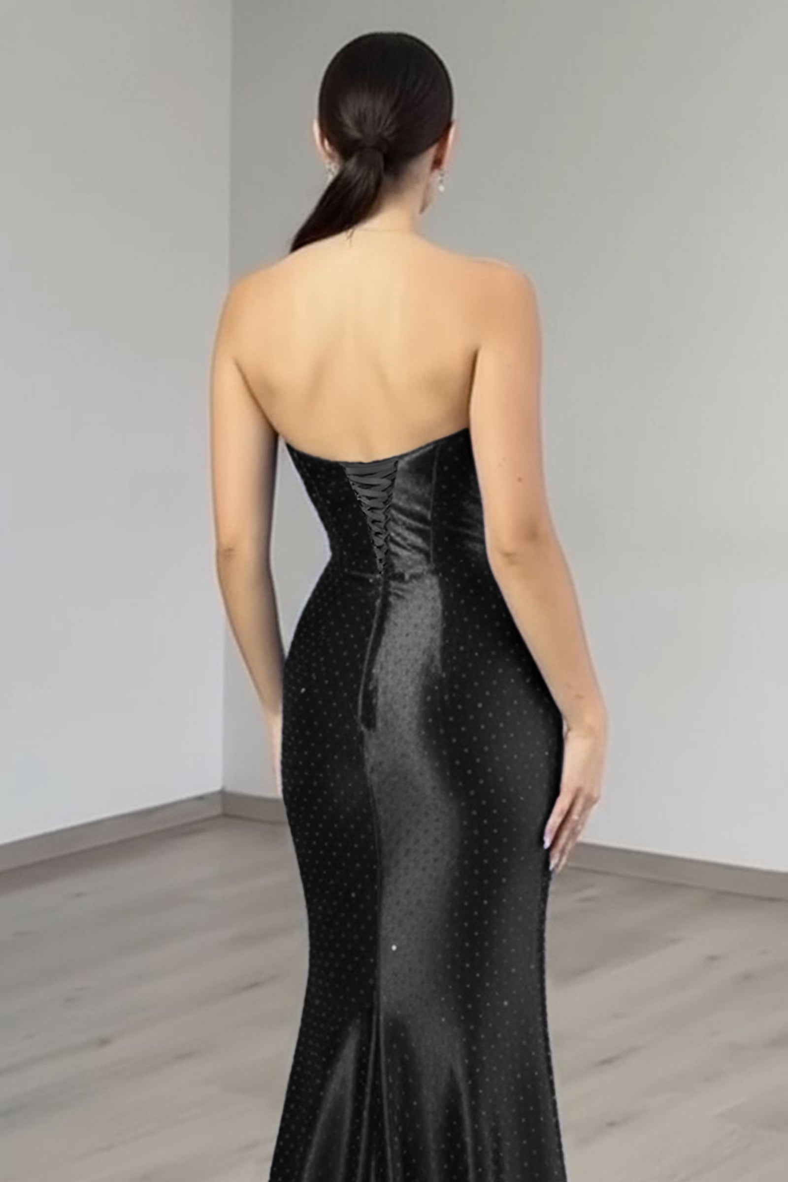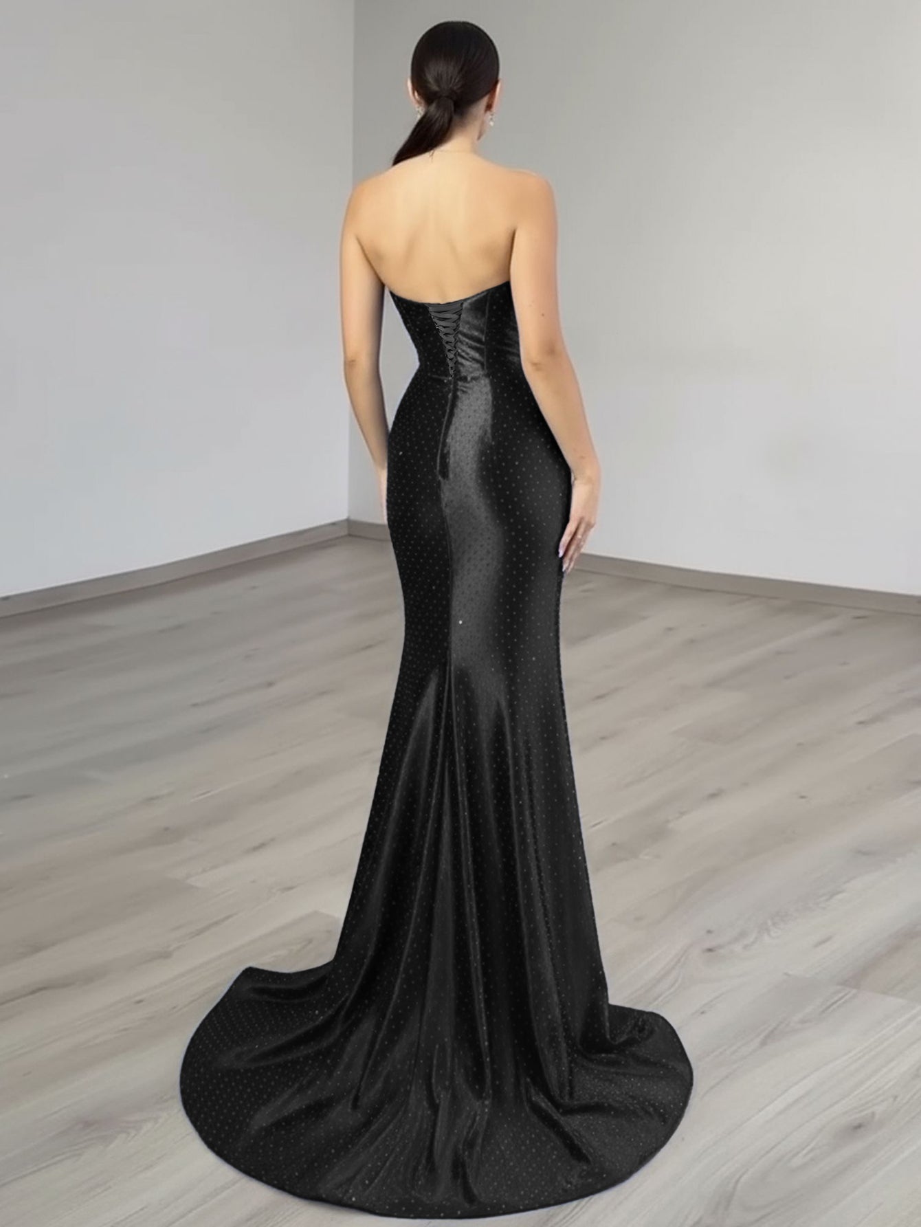 This luxury evening dress features satin with crystal on the bust. The strapless prom dress has a scoop neck and split hem. This dubai sexy evening dress is ideal for party, evening or homecoming events.