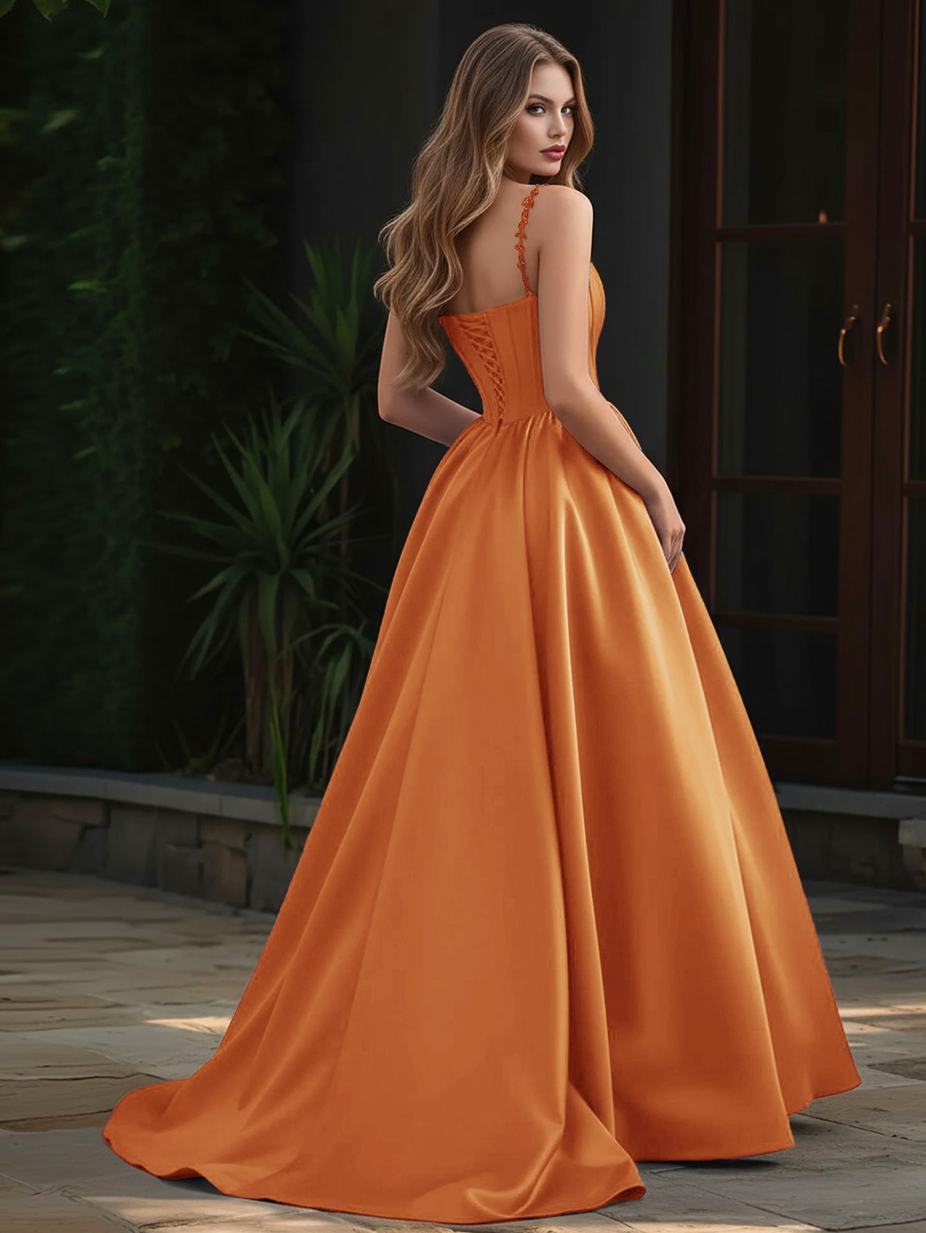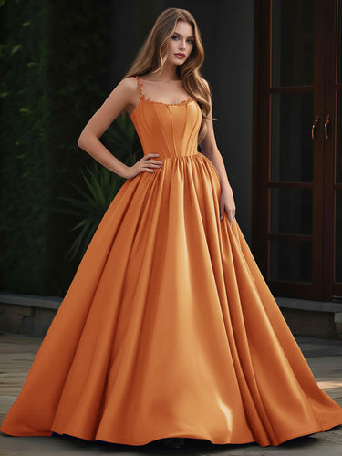 Spaghetti Straps Bodice Ball Gown Evening Dress - Orange