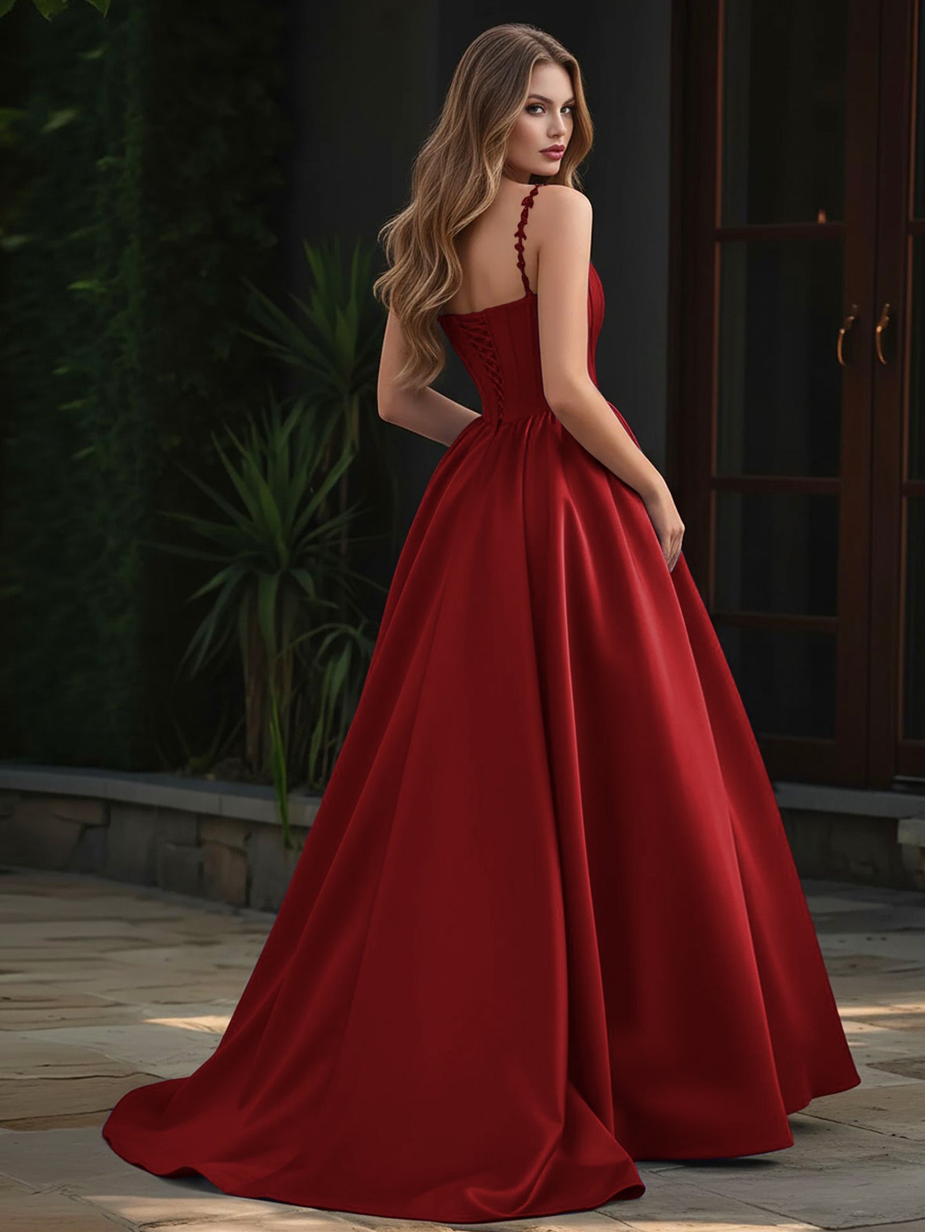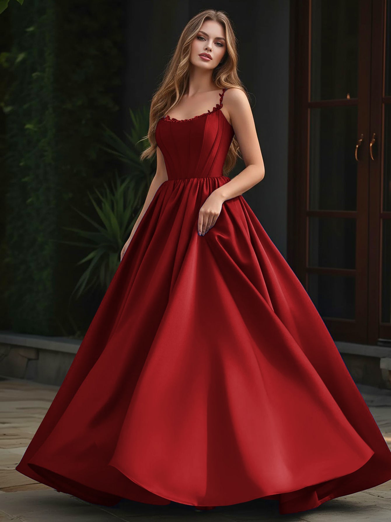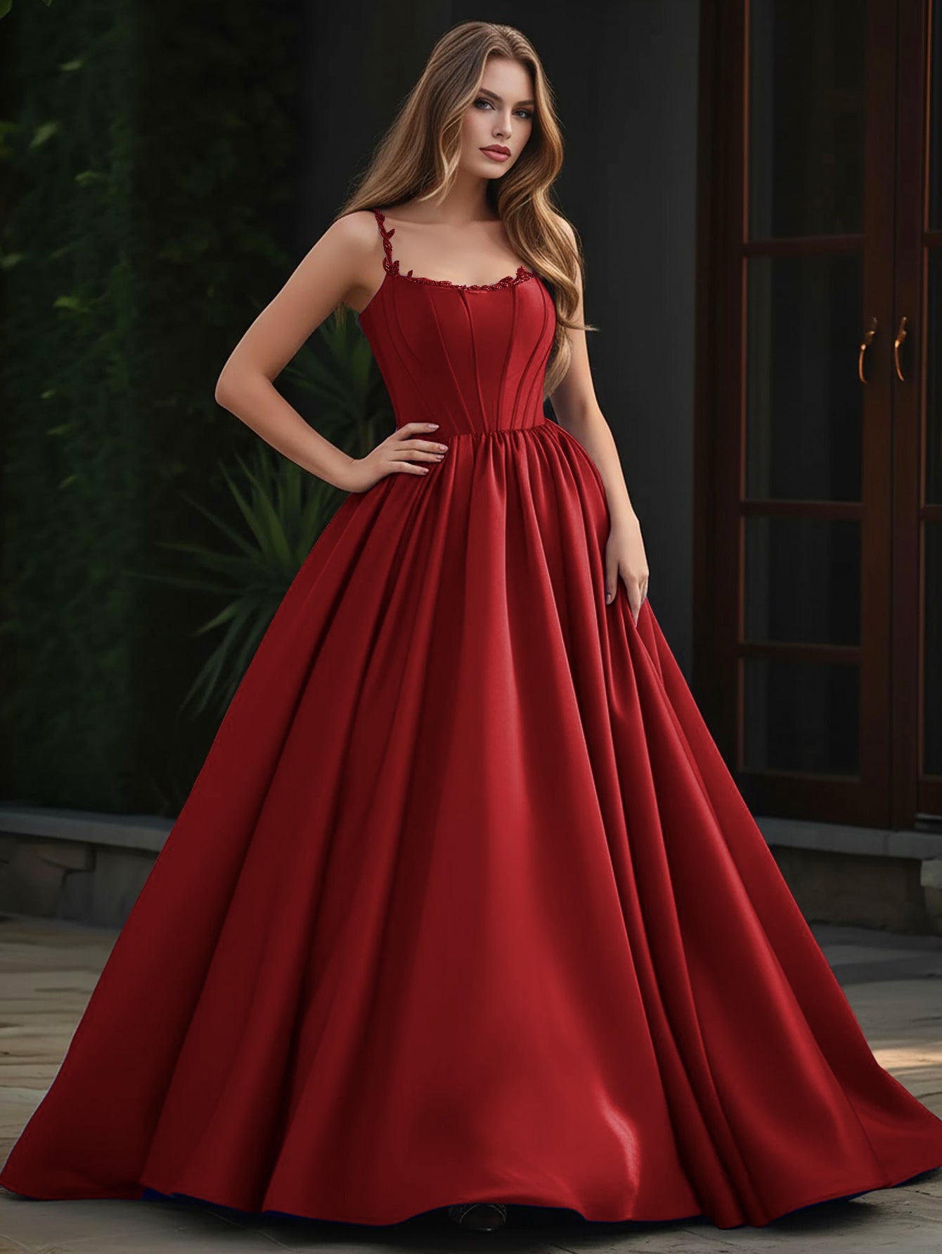 Spaghetti Straps Bodice Ball Gown Evening Dress - Red