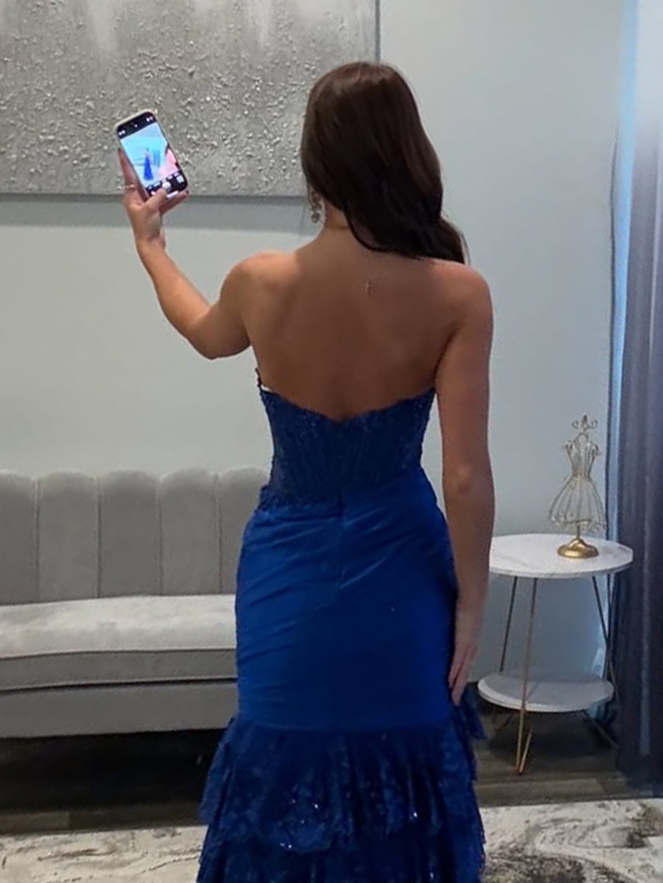 Sparkly Lace Boned Mermaid Prom Dress With Ruffle - Royal Blue