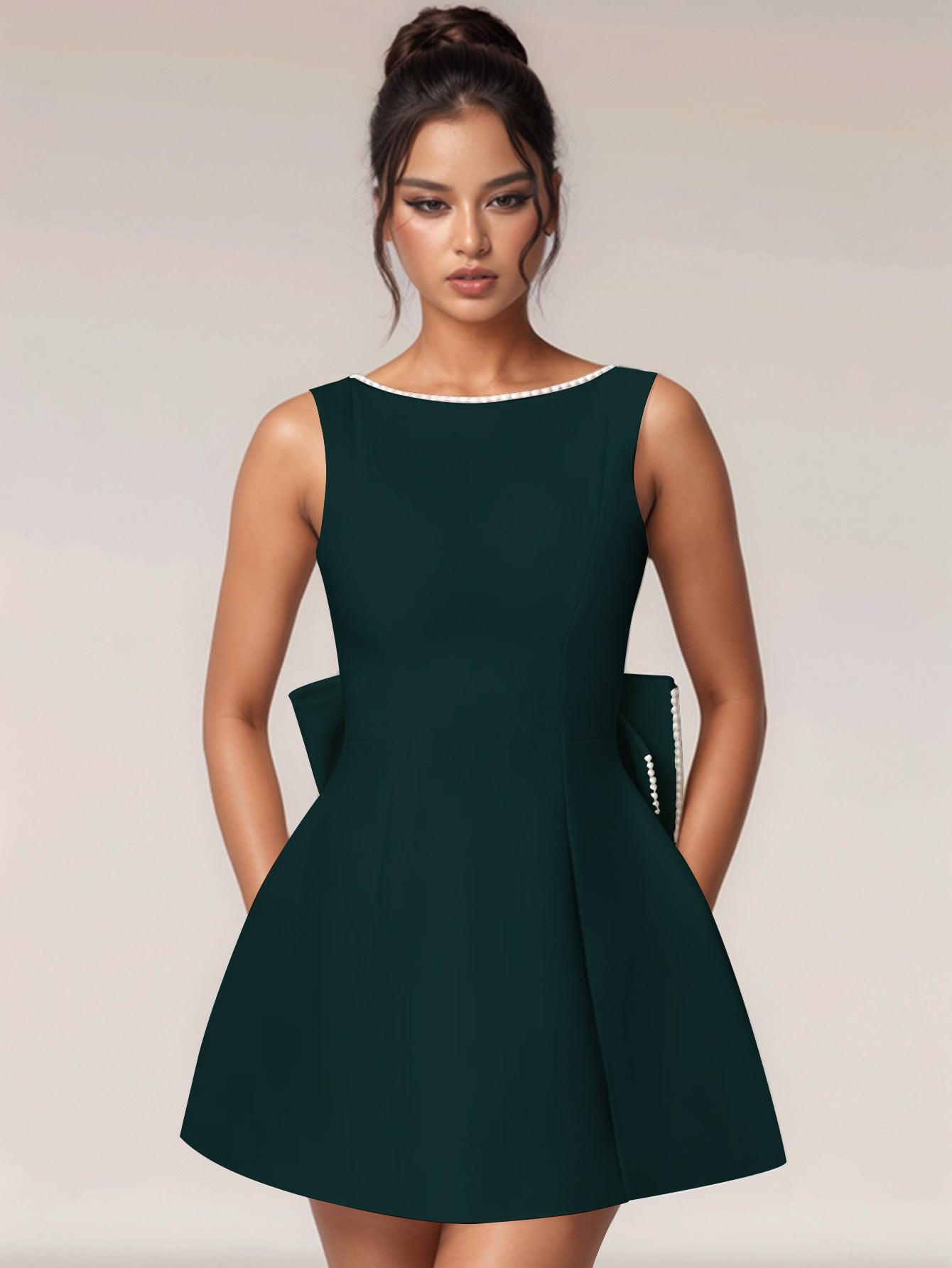 Hand Beading Backless Bow Ball Gown Prom Bridal Mini Dress - Teal