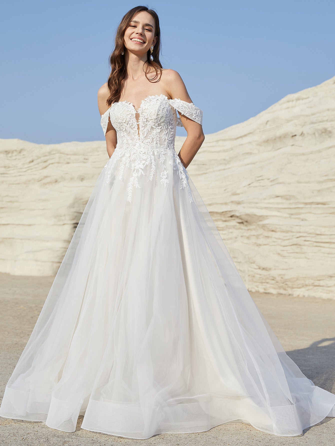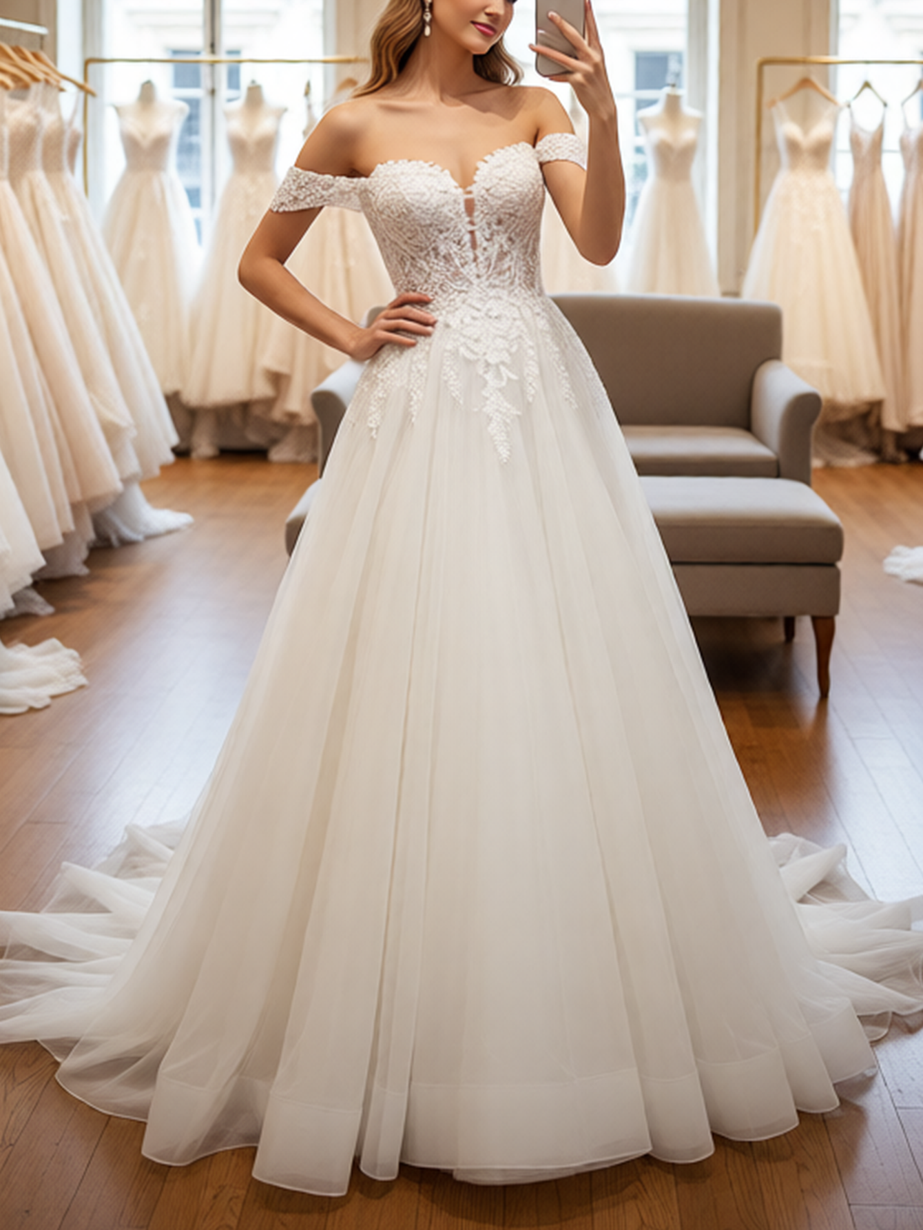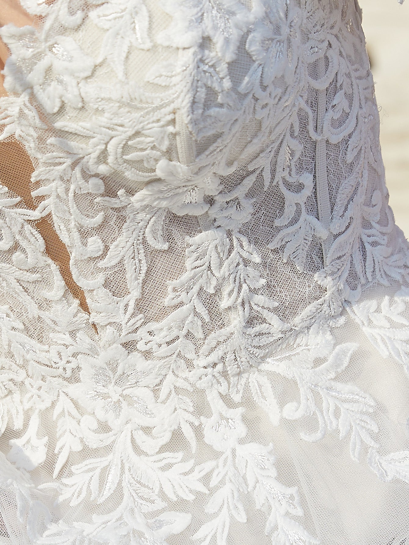 Details: Lace, Embroidery, Illusion, Sheer, Off Shoulder