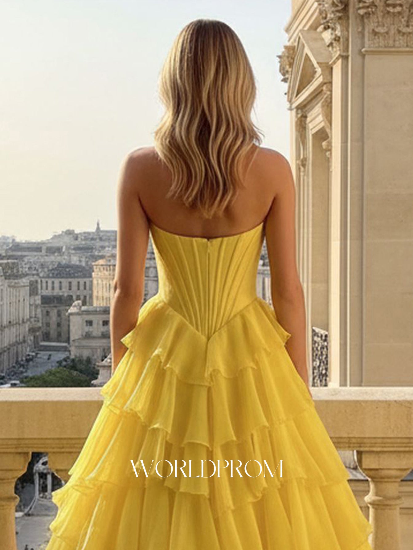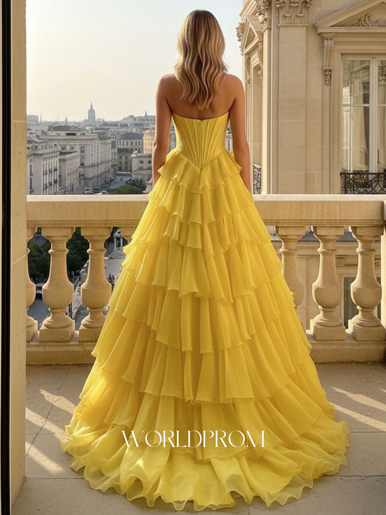 Strapless Boned Bodice Ruffle Chiffon Ball Gown Prom Dress - Yellow