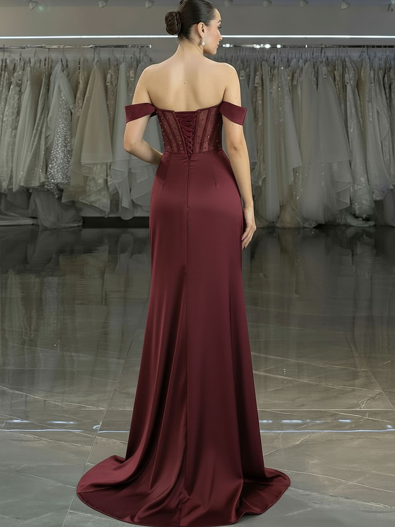Details: Backless, Fitted Waist, Beaded, Bodice, Illusion