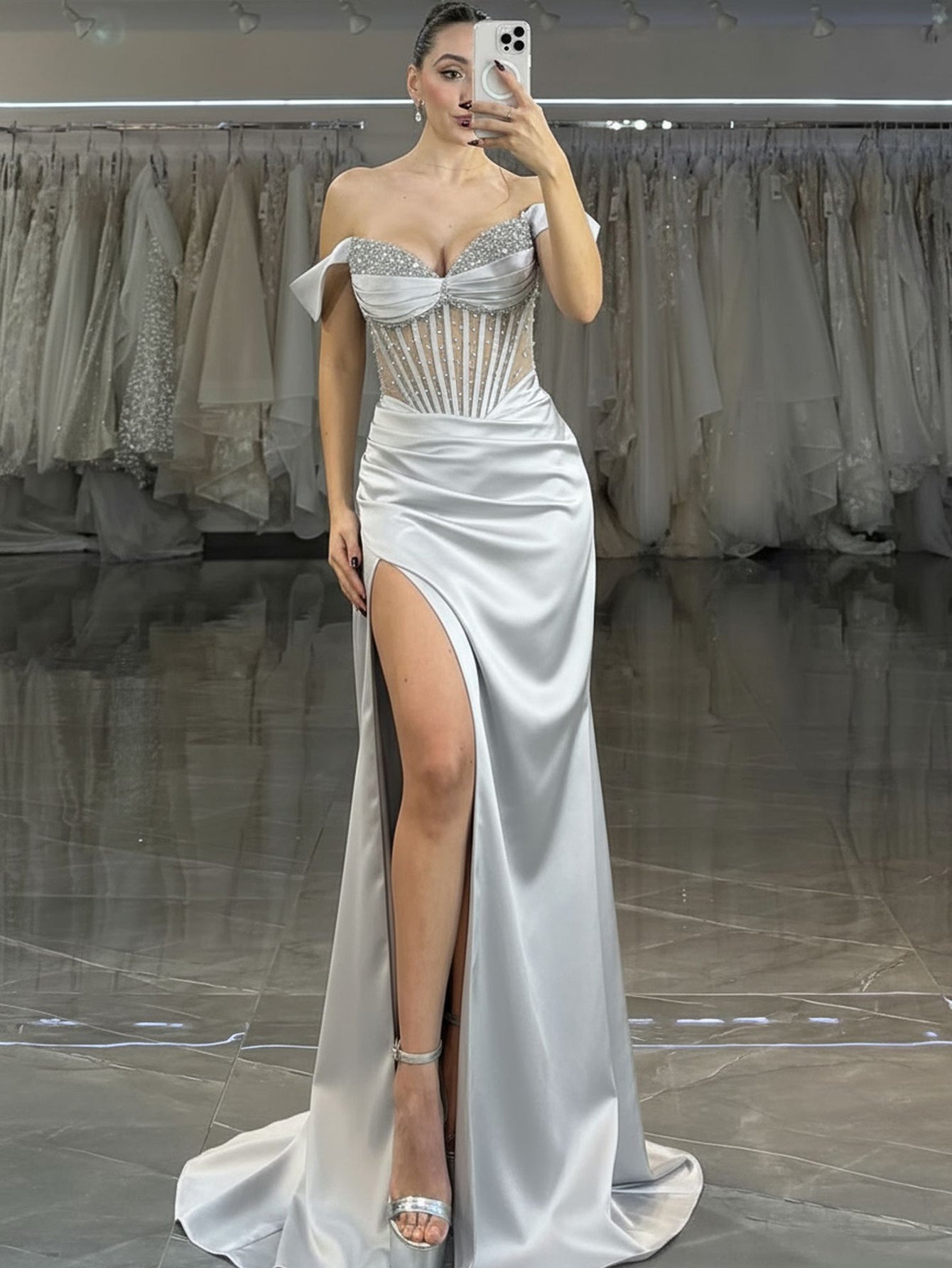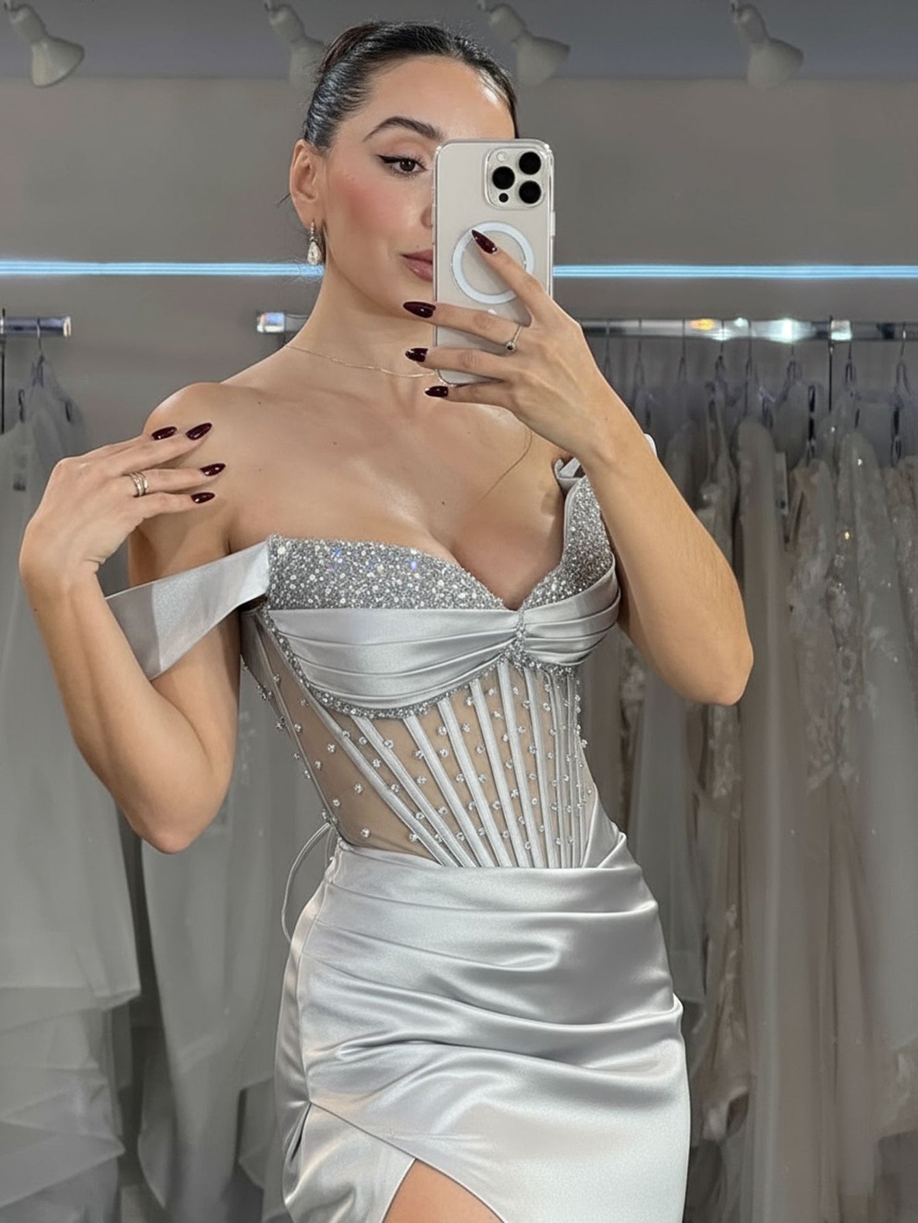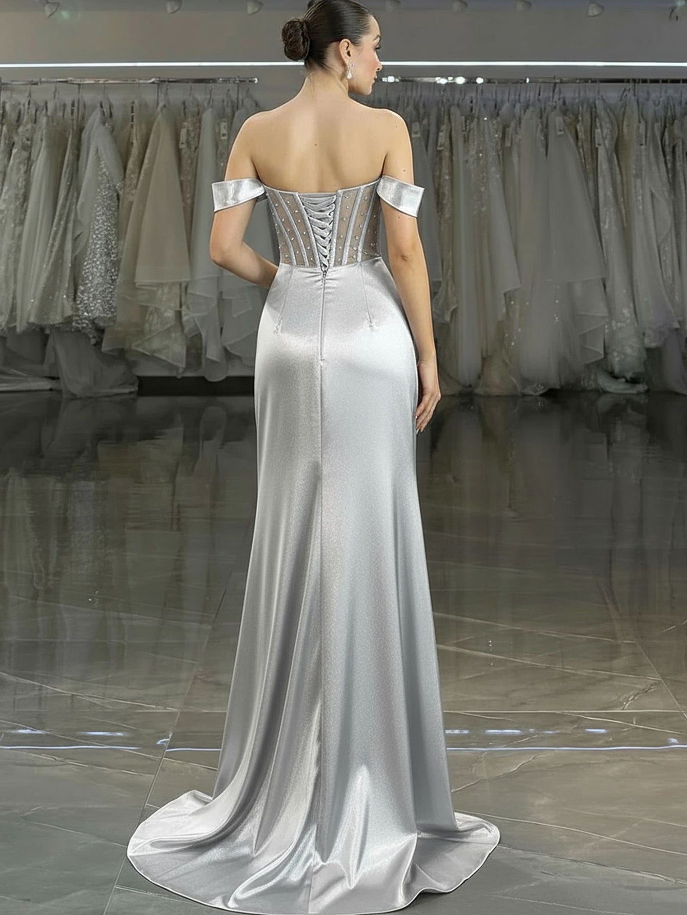 Beaded Strapless Illusion Bodice Mermaid Prom Dress Long - Silver