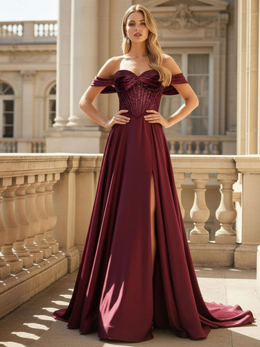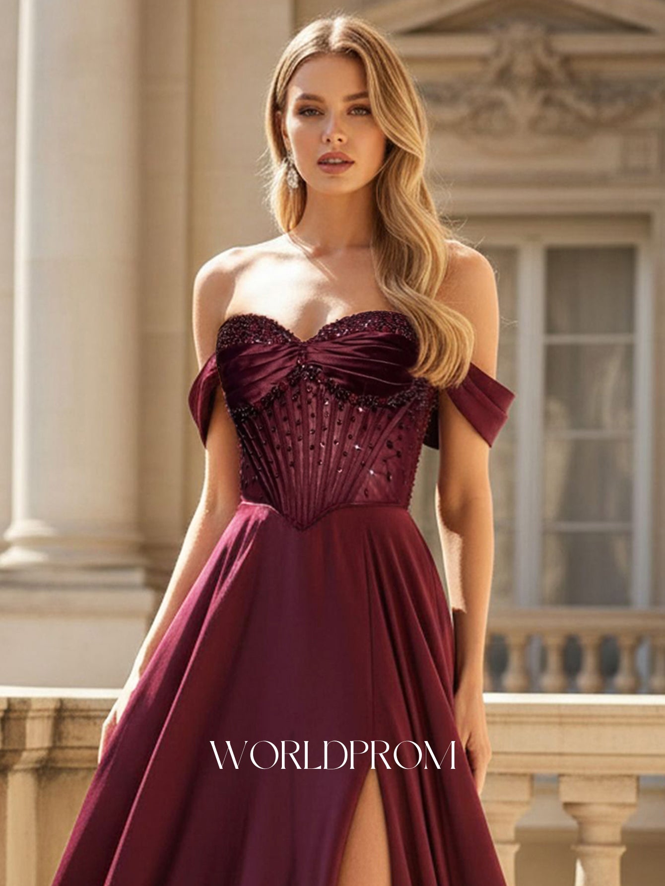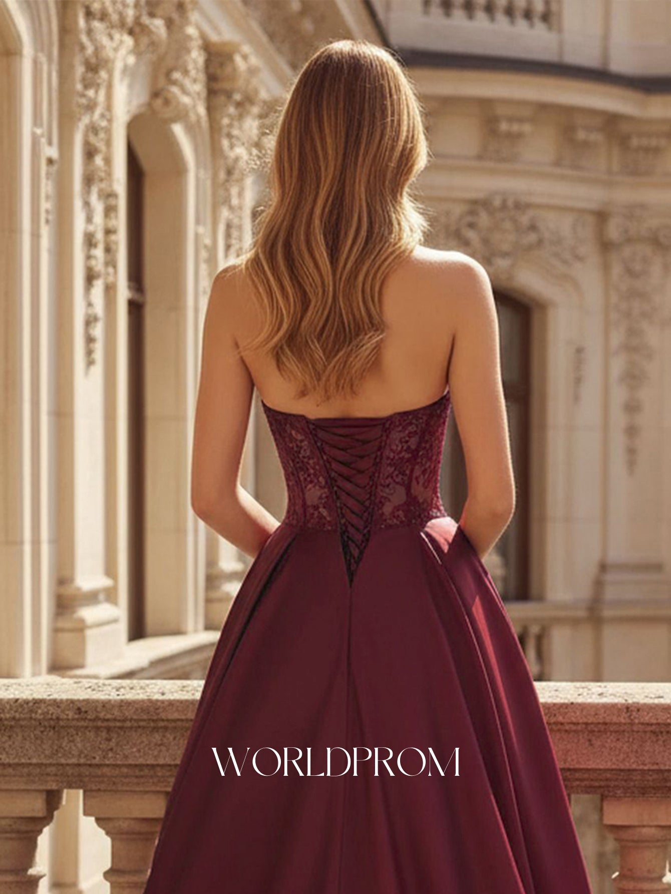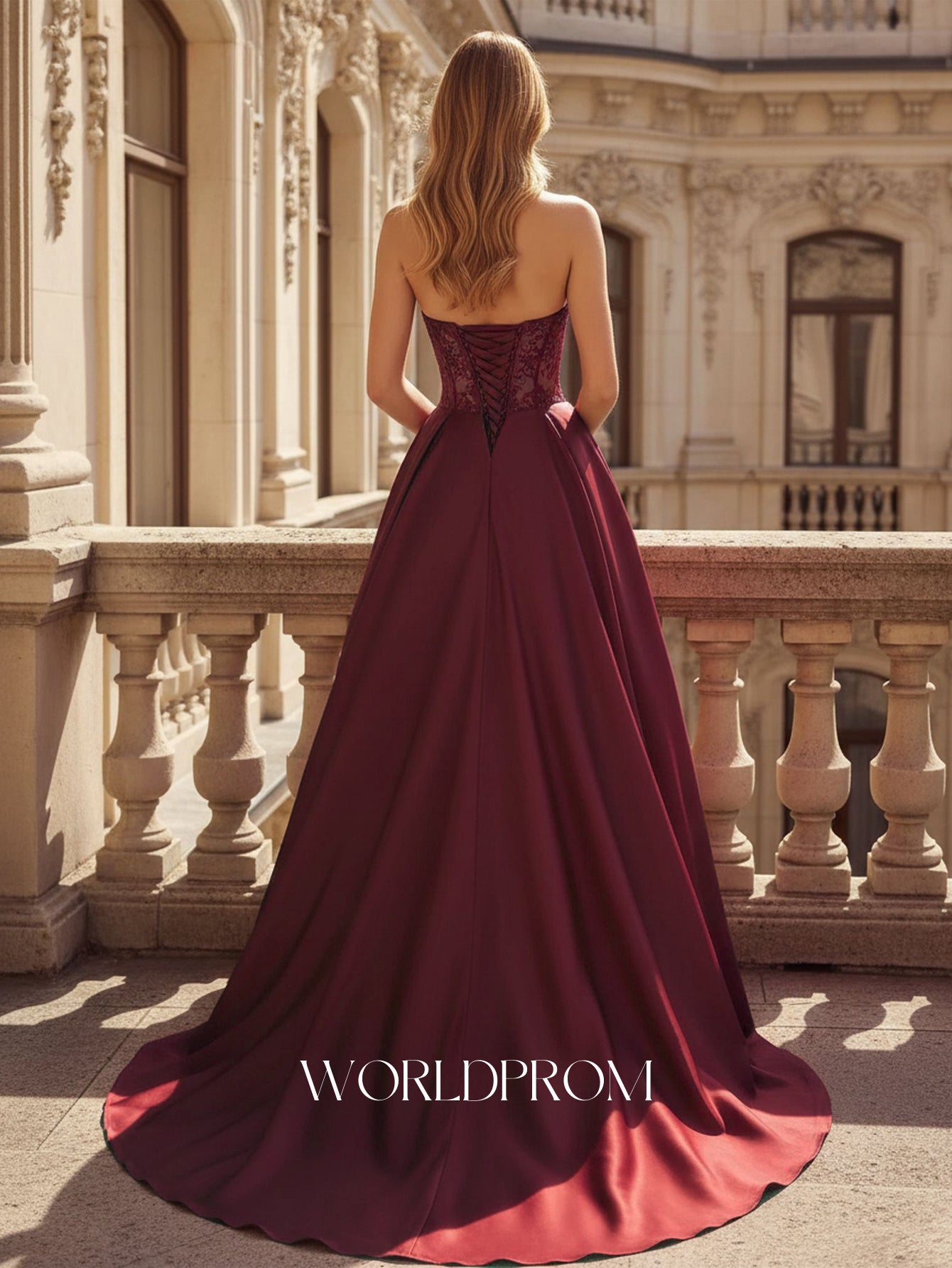 This satin prom gown features crystal beading sheer on the illusion bodice. The evening dress has a sweetheart neckline and pleated hem. Worldprom mermaid prom dresses are ideal for party, evening or festivals.