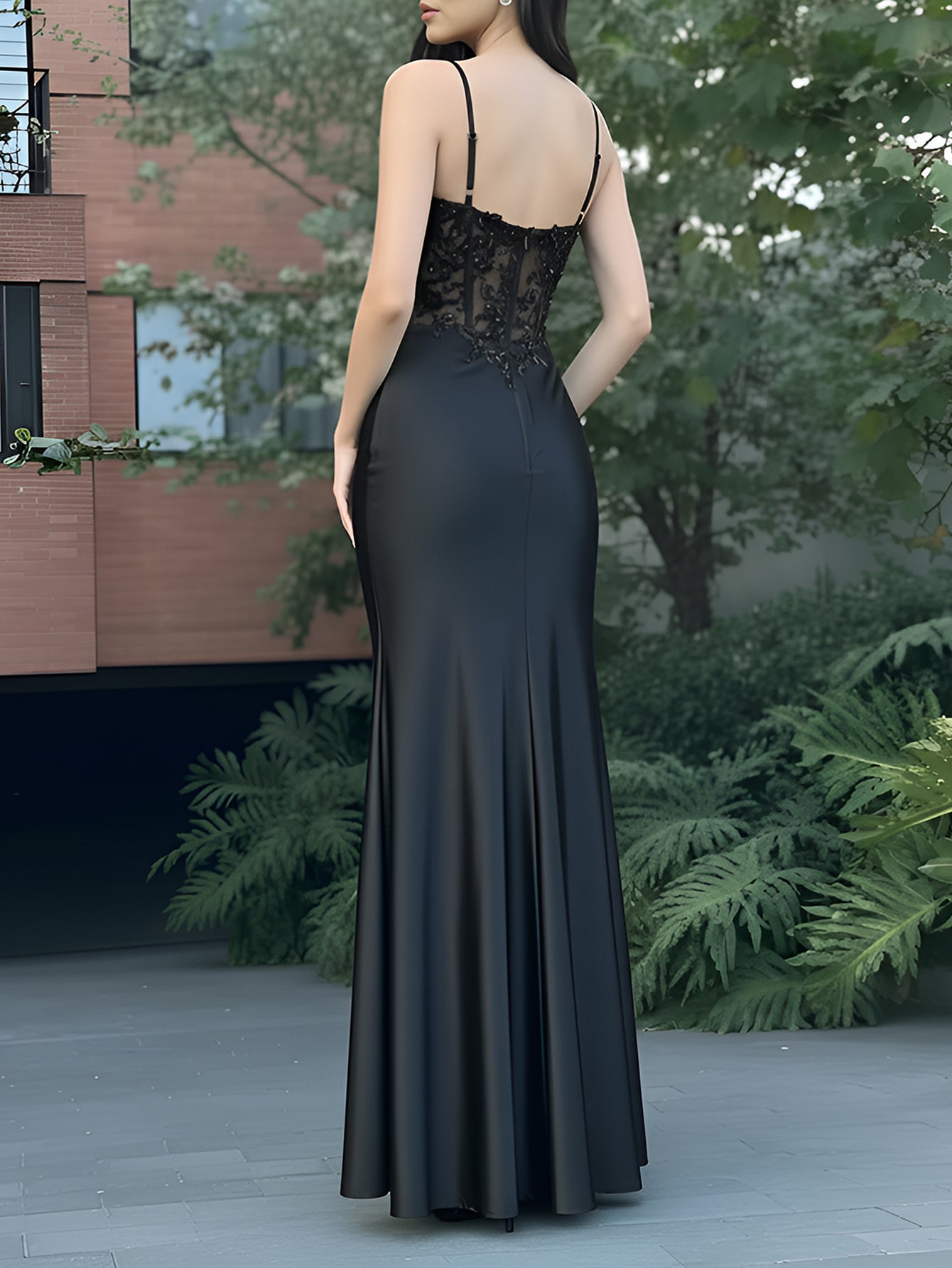 Bodice Split Sparkly Lace Mermaid Long Prom Dress - Black