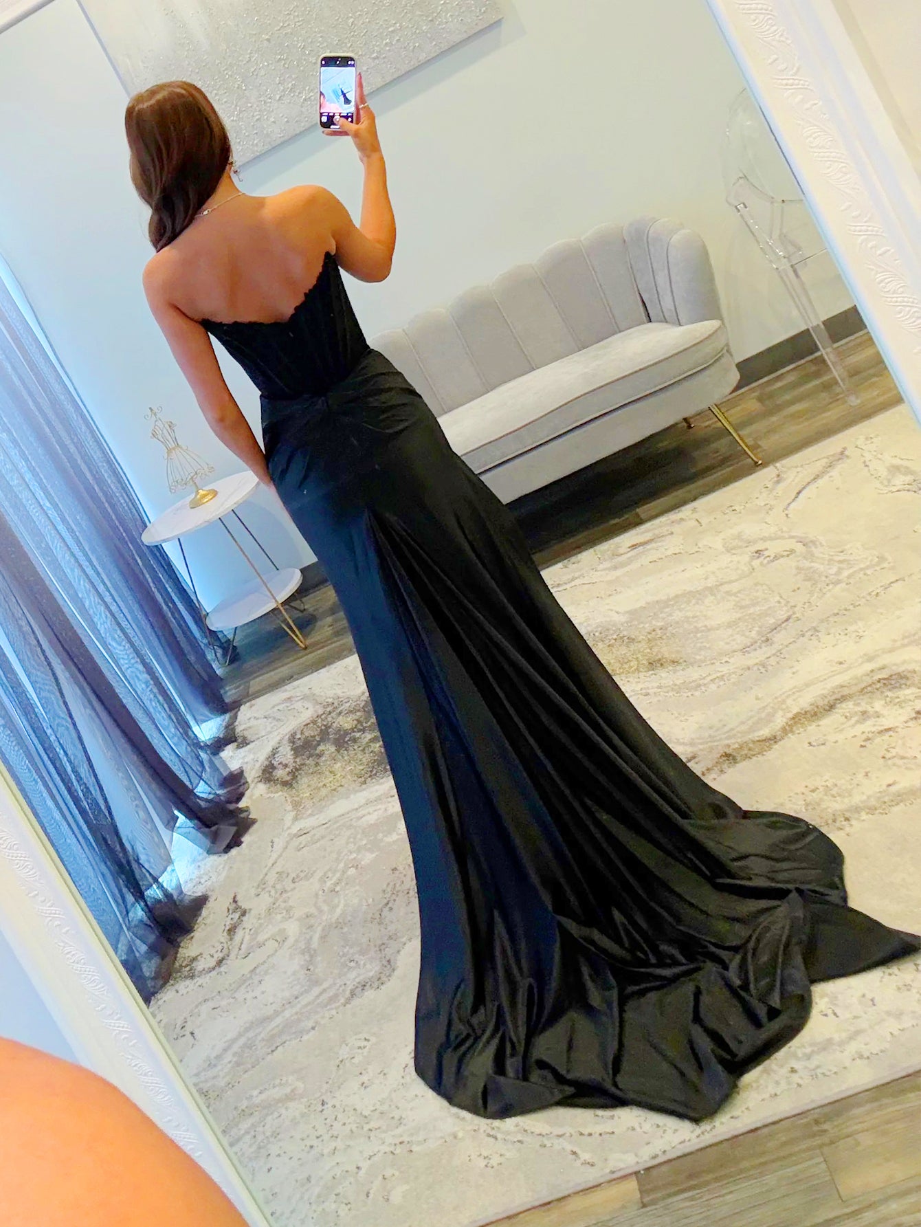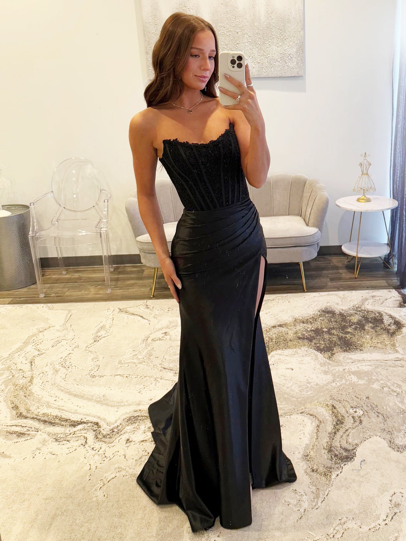 Boned Lace Embroidery Mermaid Prom Dress With Slit - Black
