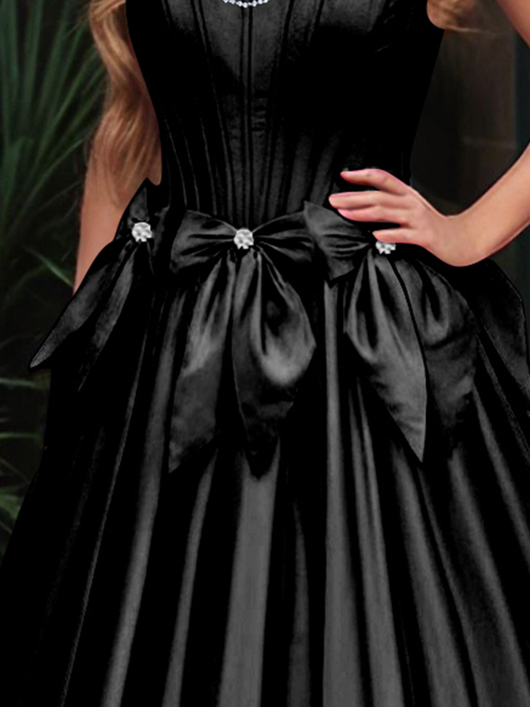 Details: Backless, Bow, Ruffle Hem, Crystal