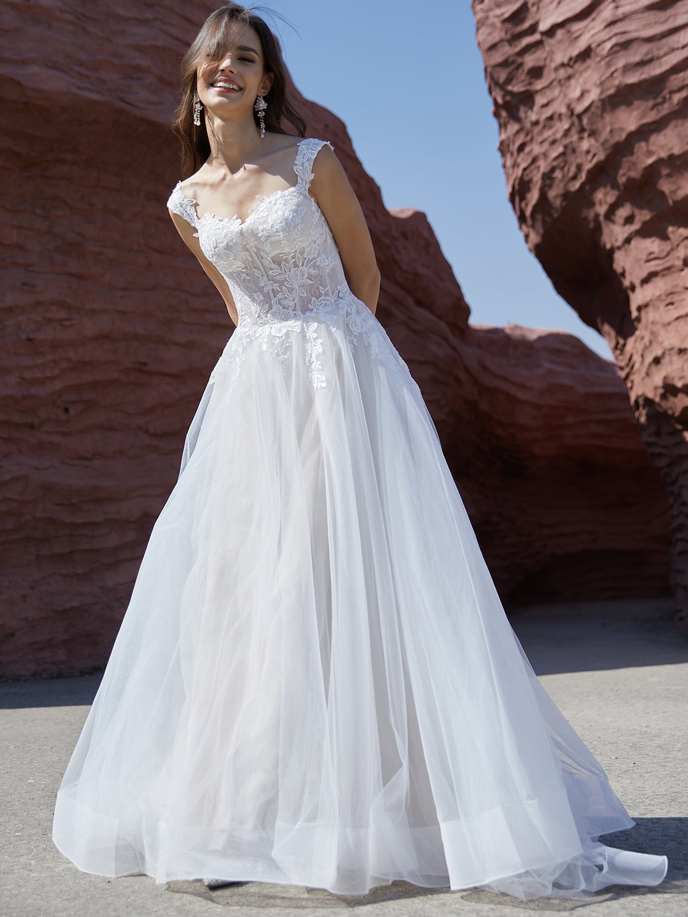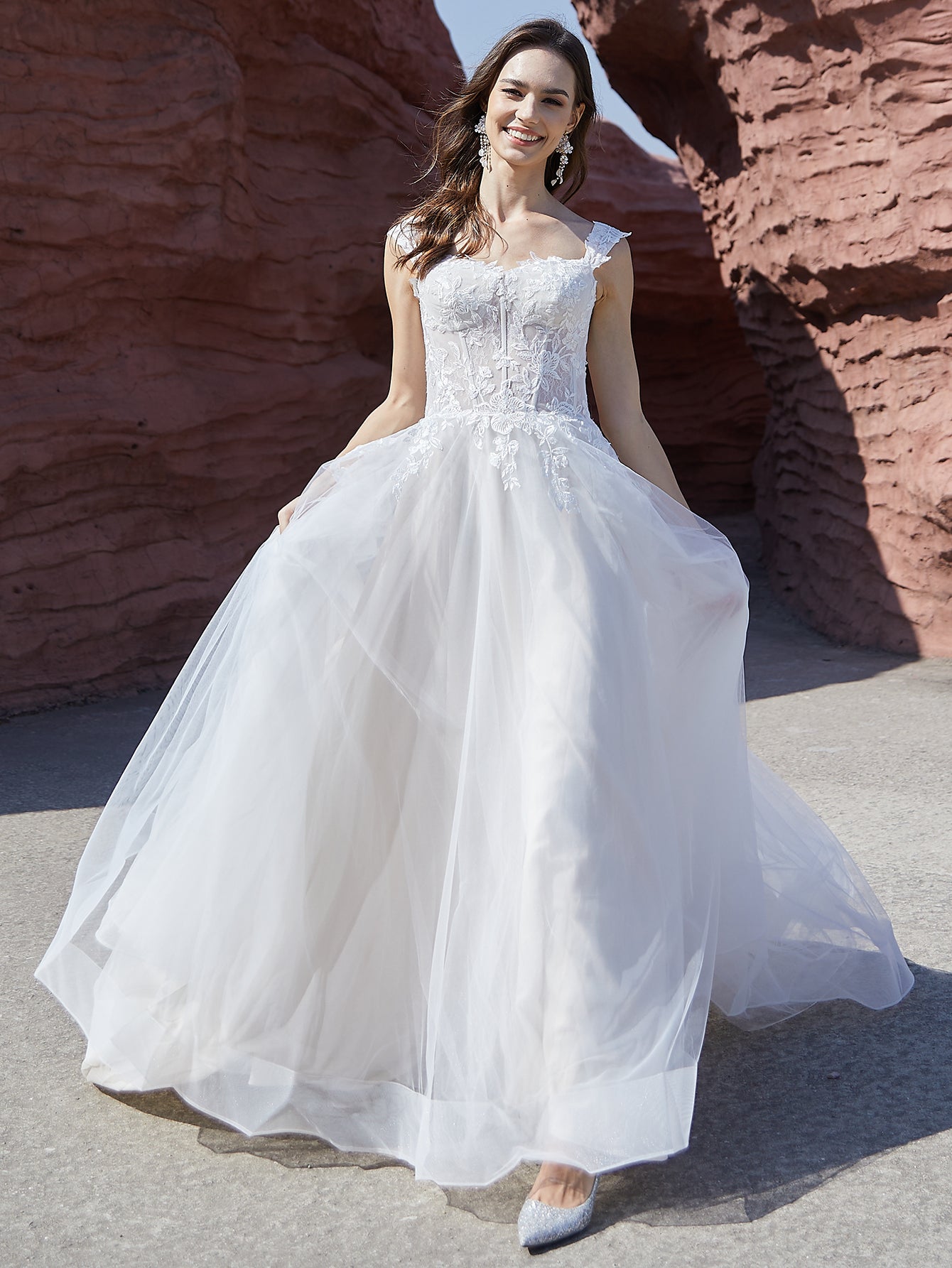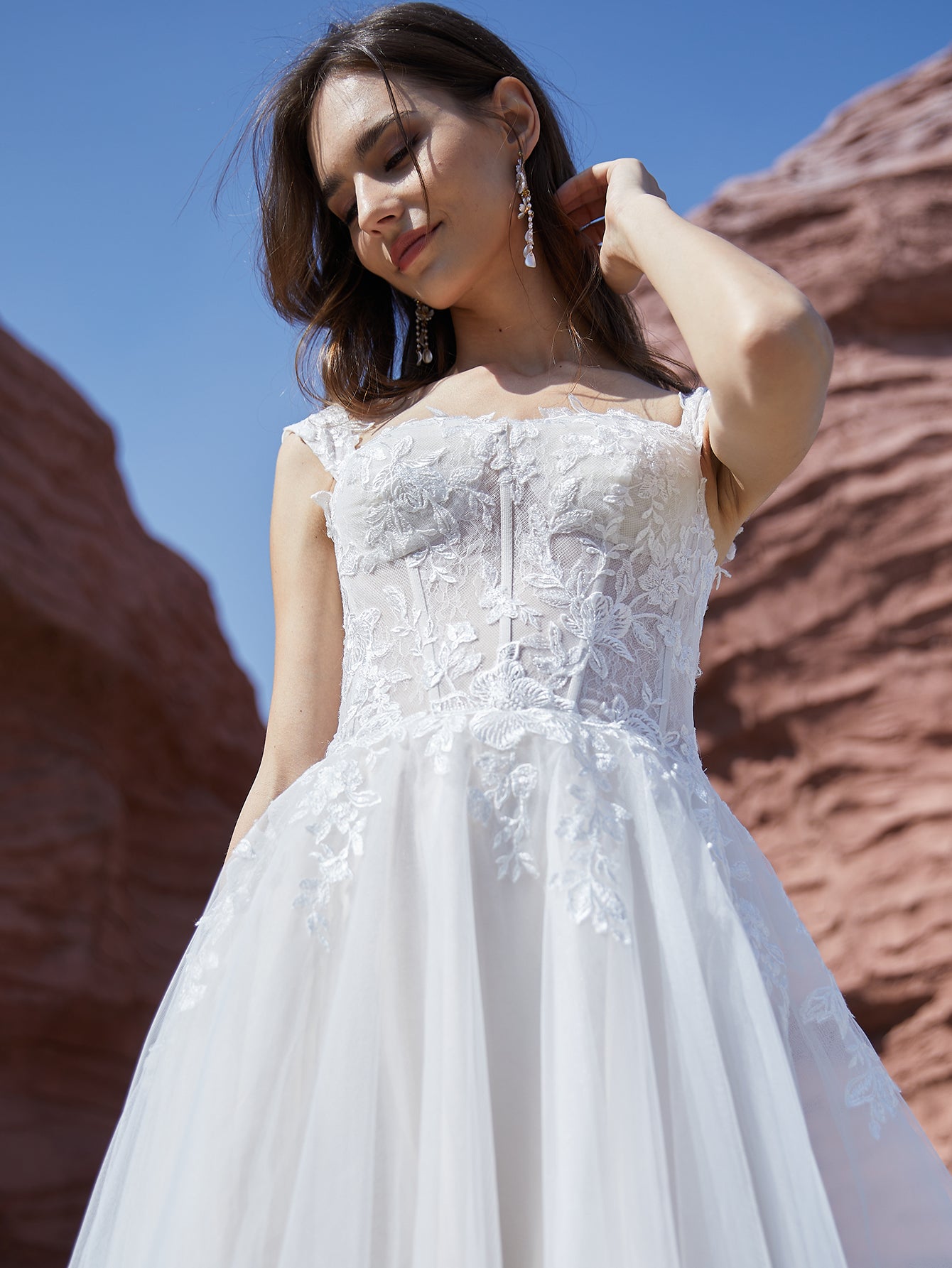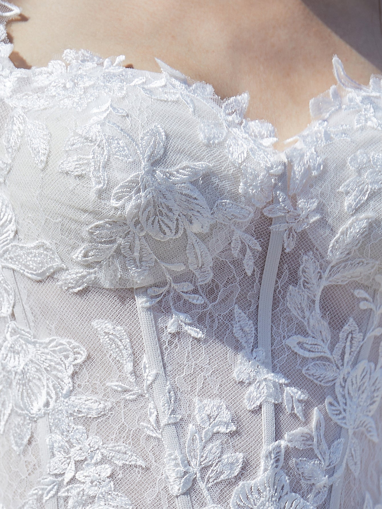 Details: Lace, Embroidery, Appliques, Illusion, Sheer, Chapel Train