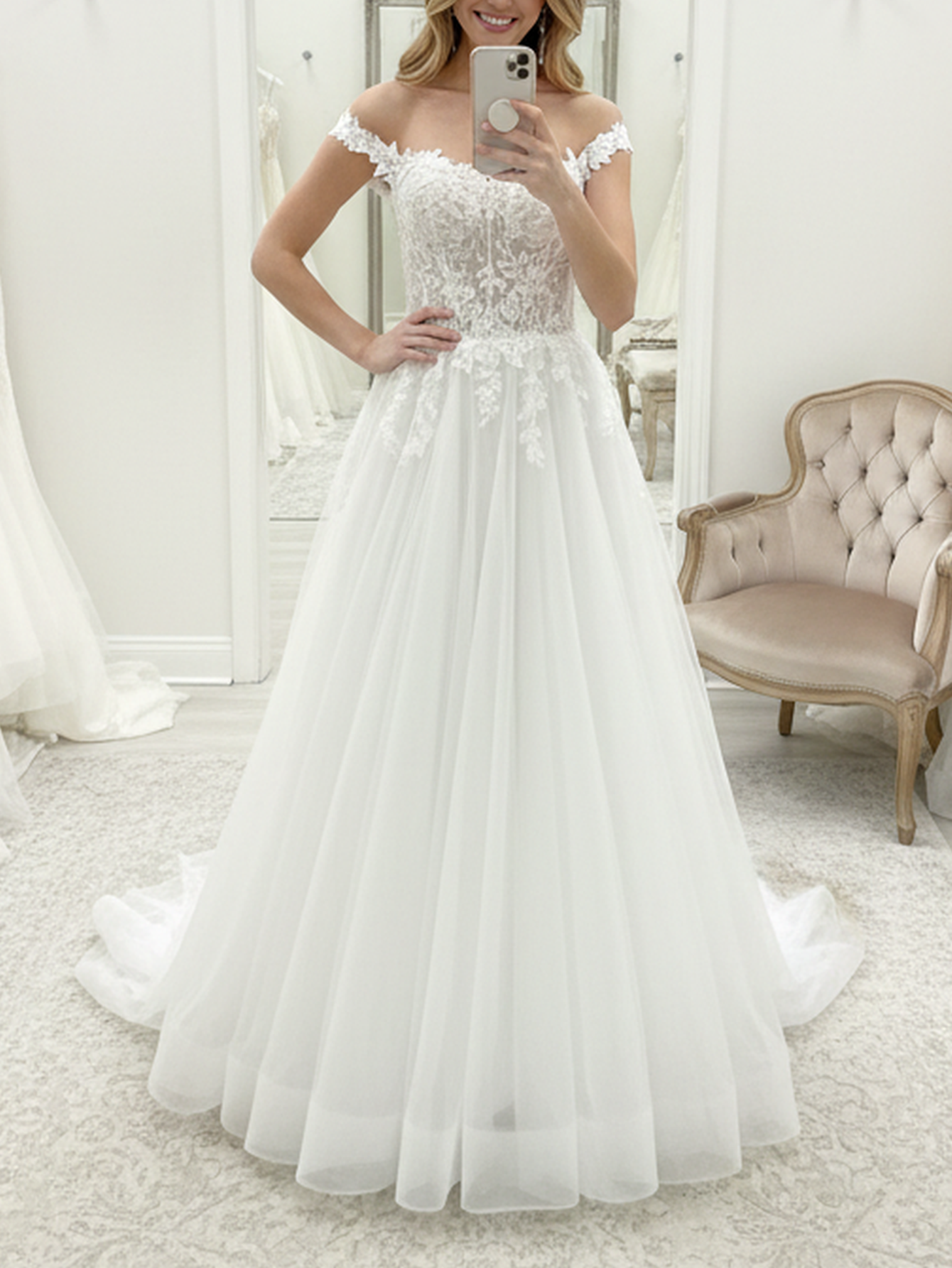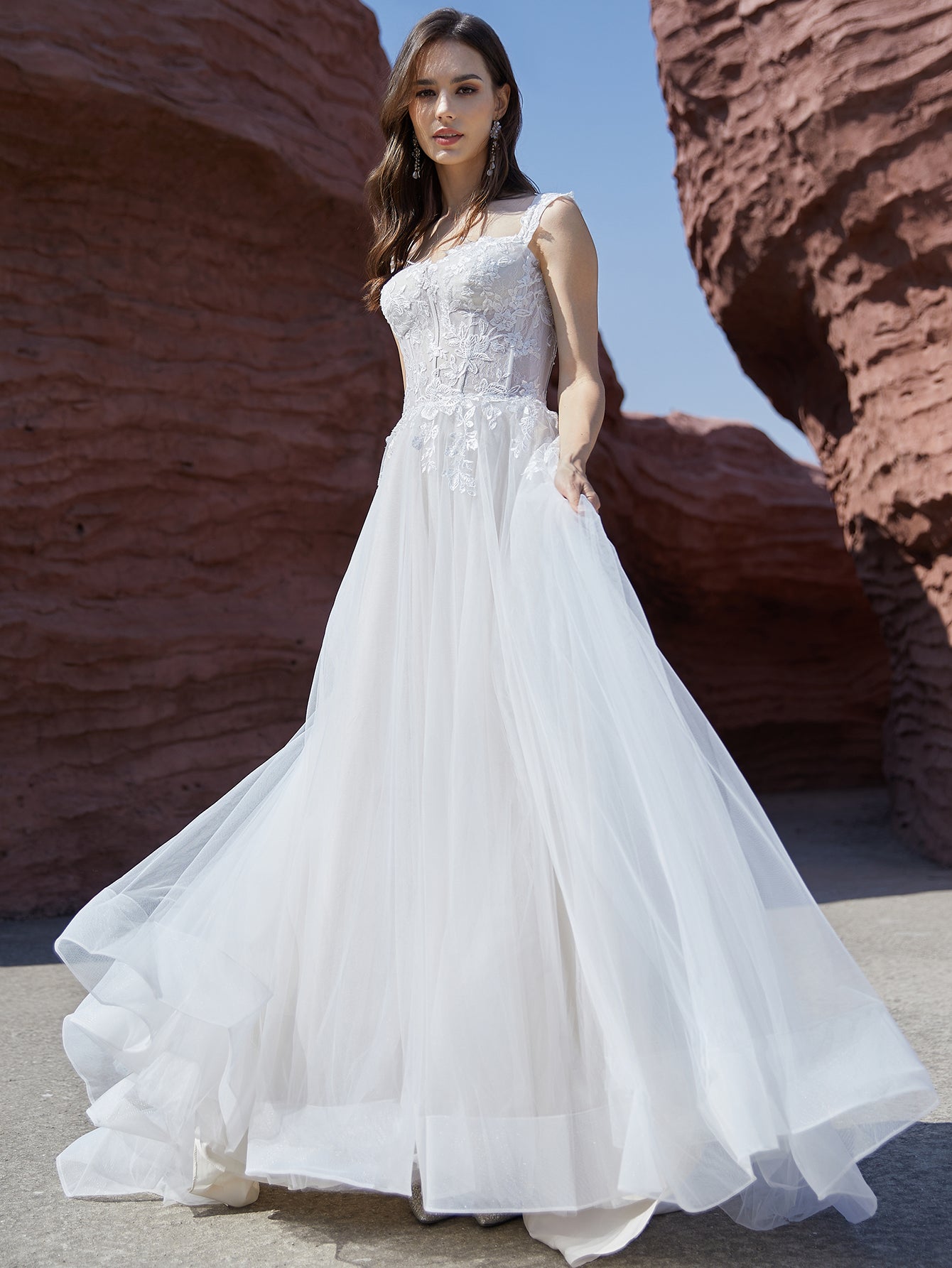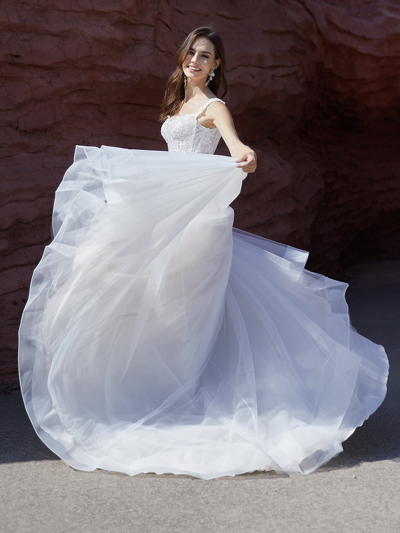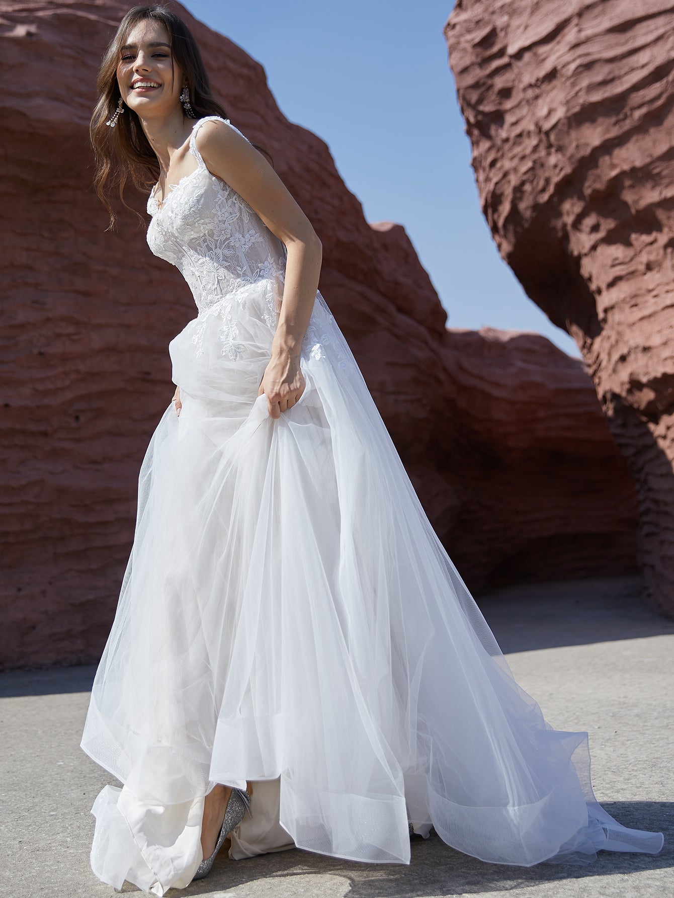 Details: Lace, Embroidery, Appliques, Illusion, Sheer, Chapel Train