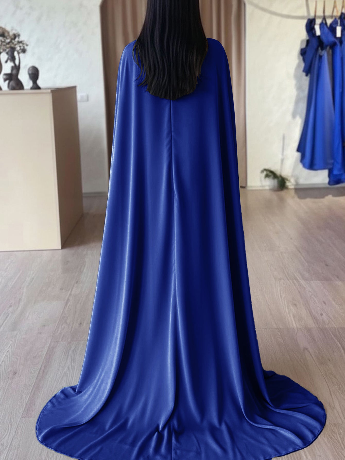 Crystal Sheath Long Prom Dress With Shawl - Royal Blue