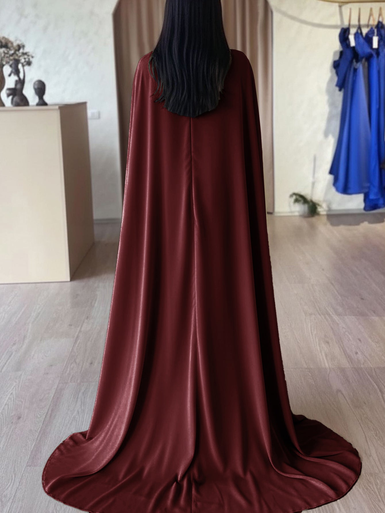 Crystal Sheath Long Prom Dress With Shawl - Burgundy