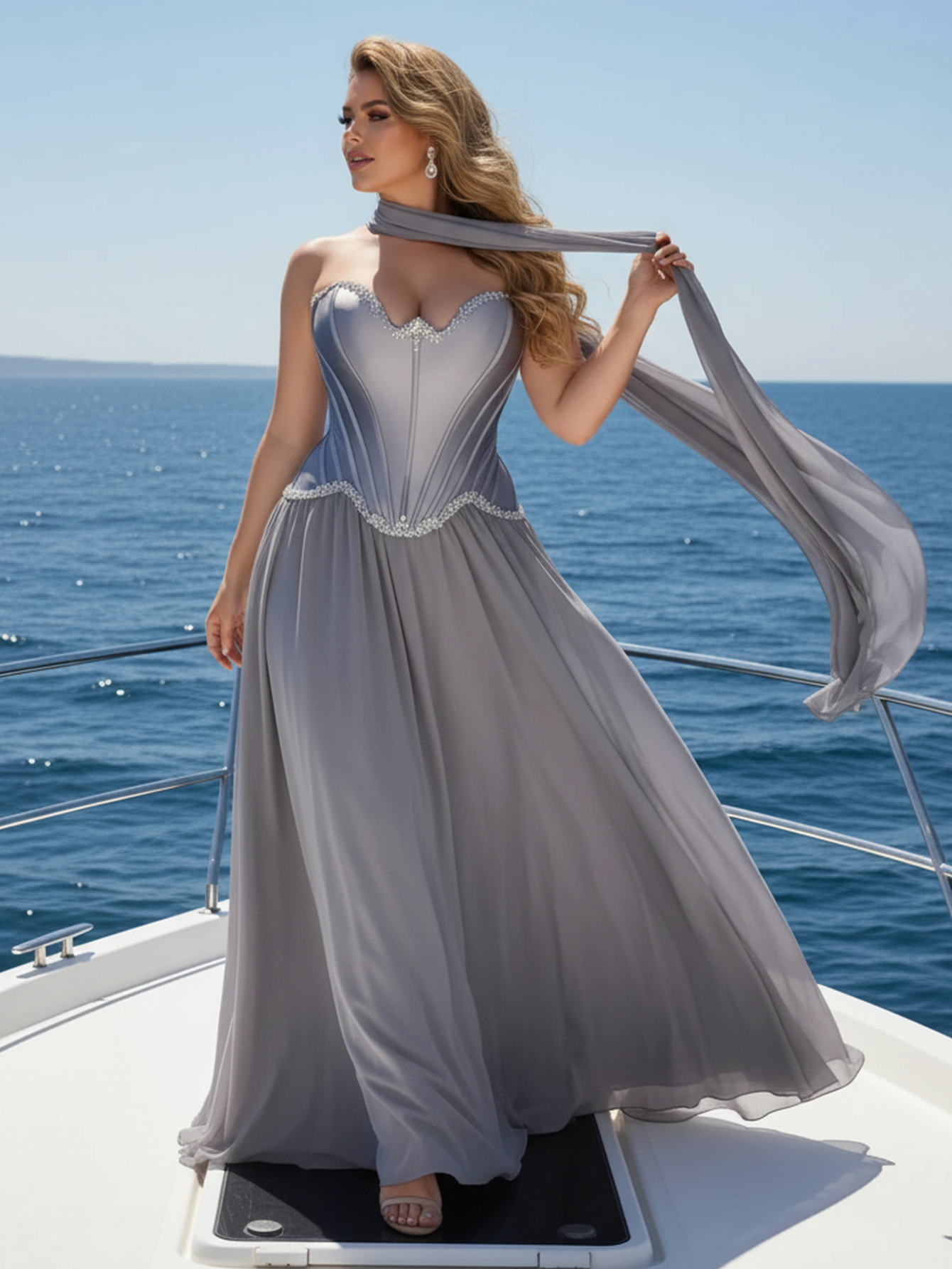 Details: Two Pieces, Crystal, Corset, With Shawl, Pleated