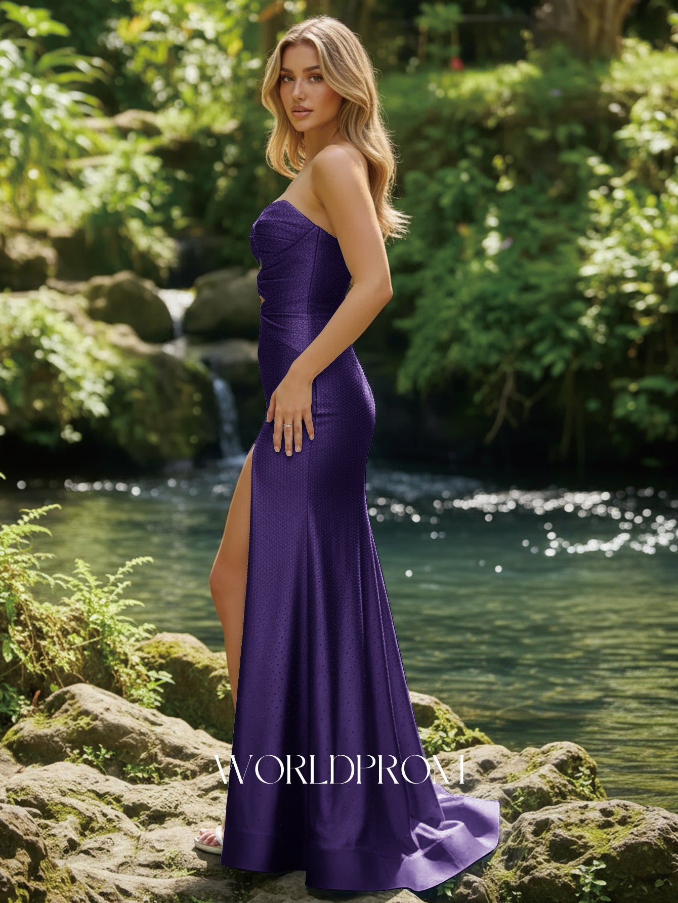 Cut Front Luxury Hot Fix Mermaid Long Evening Dress - Purple