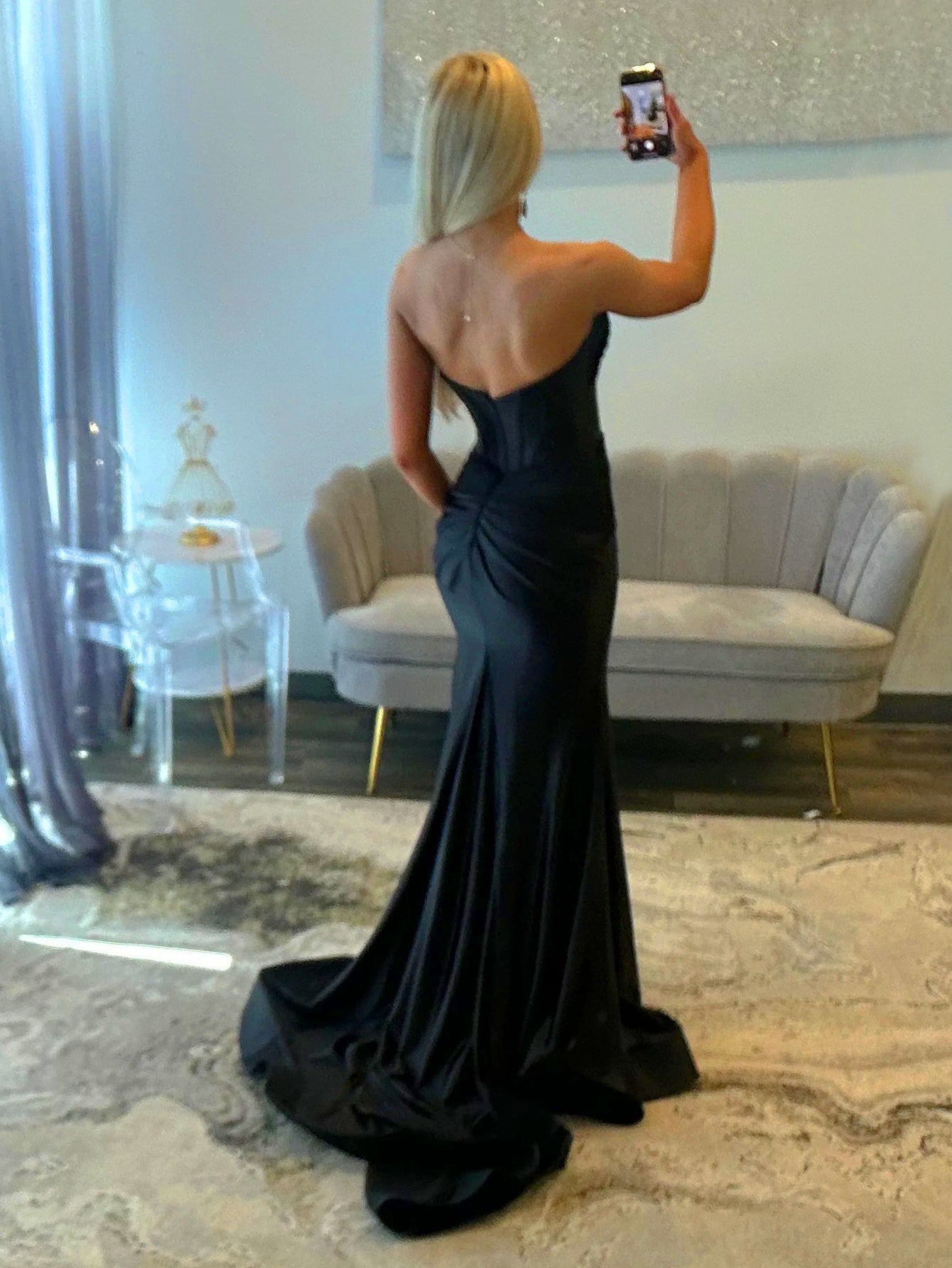 This stretch satin prom gown features cut front on the bodice. The strapless maxi dress has a sweetheart neckline and pleated hem. This mermaid formal dress is ideal for party, evening or festivals.