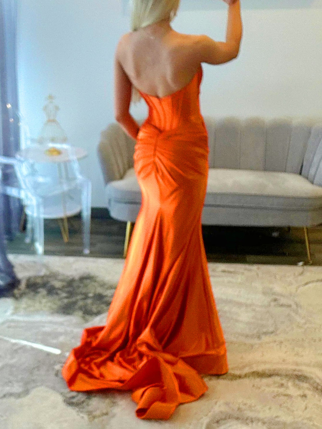 Cut Front Pleated Mermaid Prom Dress With Split - Orange