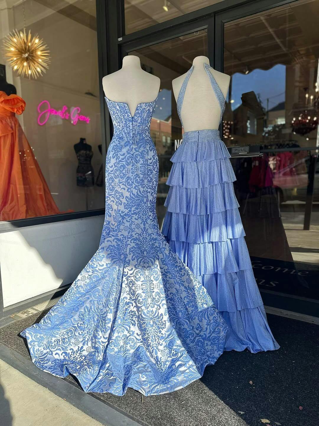 This satin prom gown features cut waist on the bodice. The halter evening dress has a V-neckline and ruffle hem. This ball gown formal dress is ideal for party, evening or festivals.