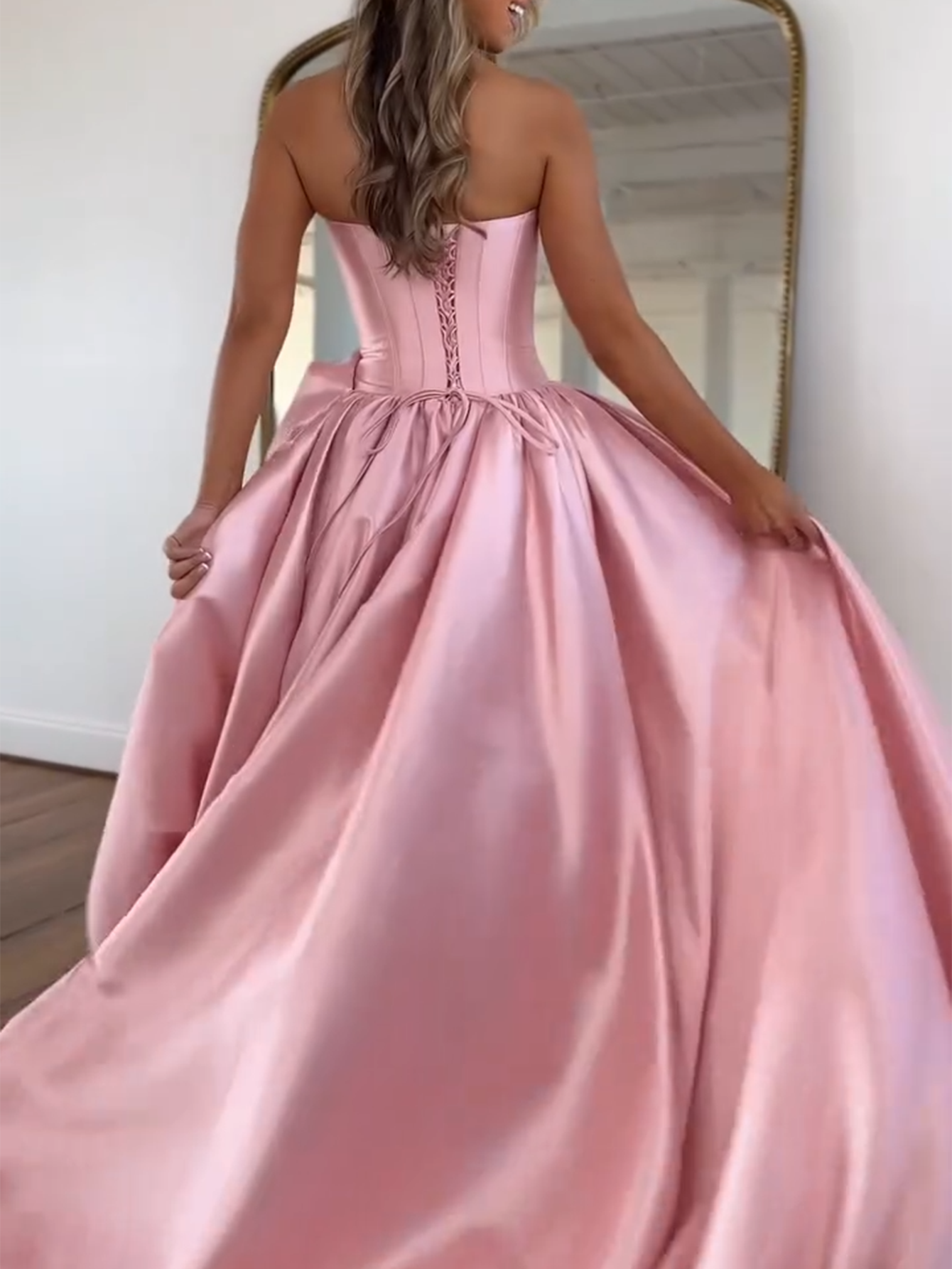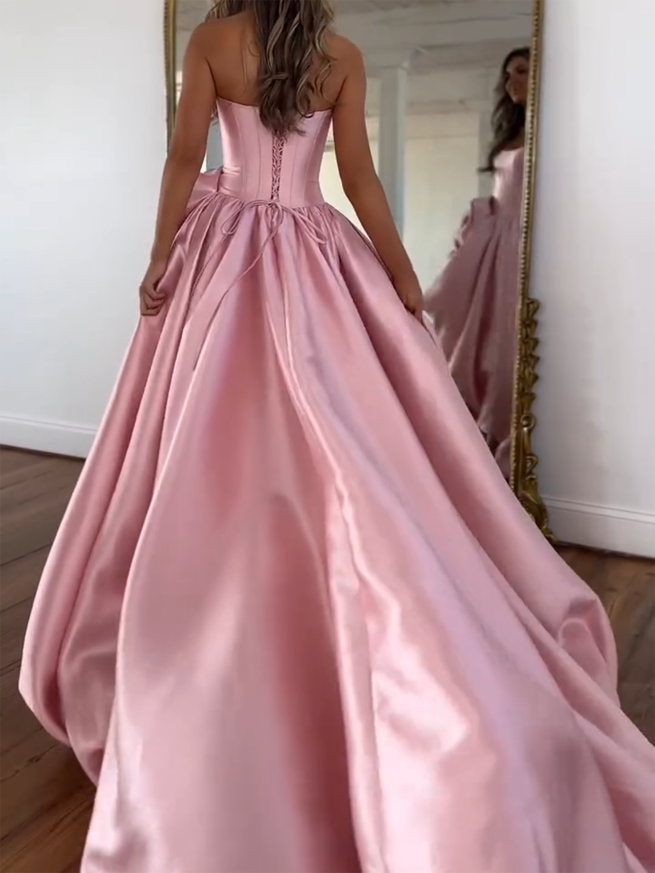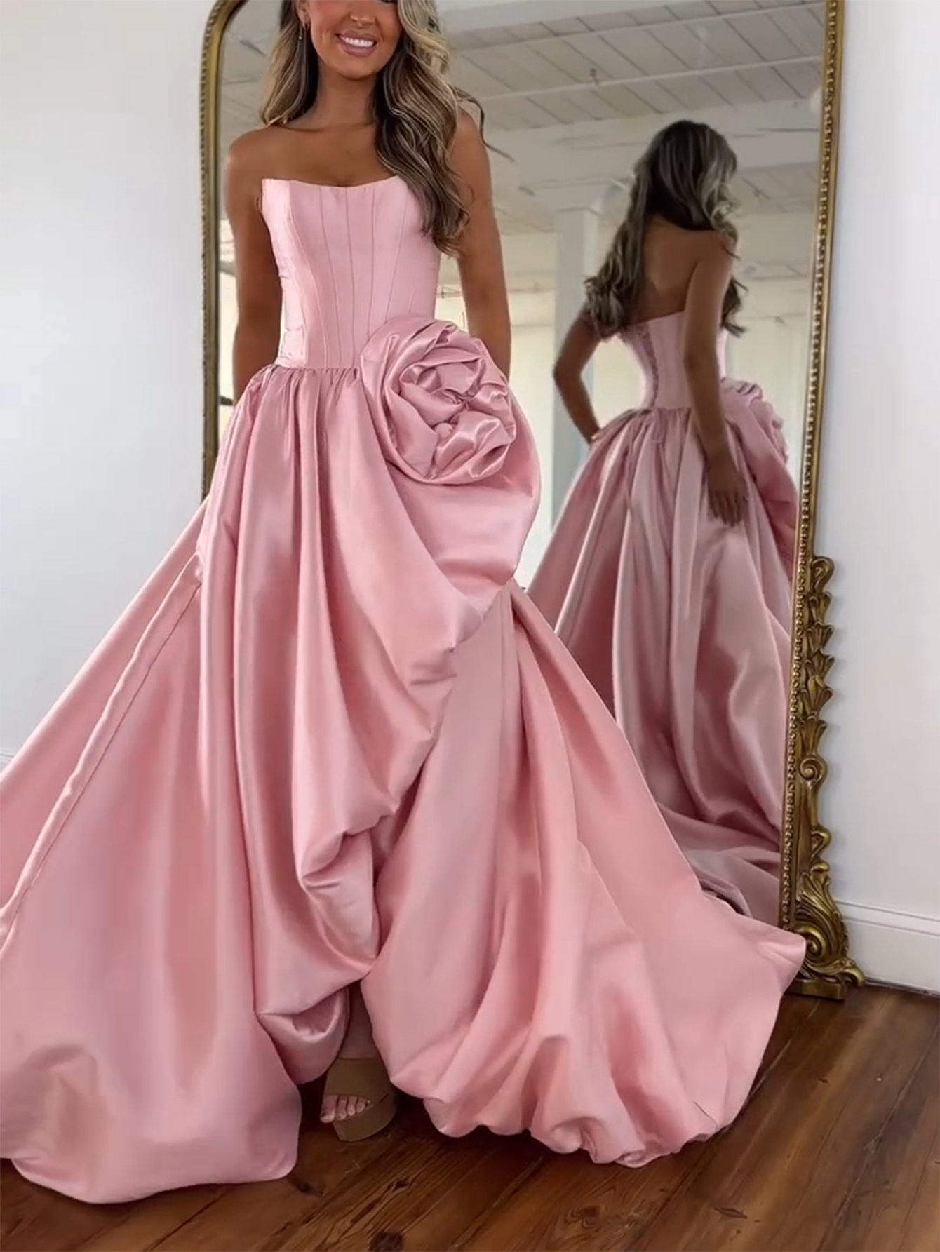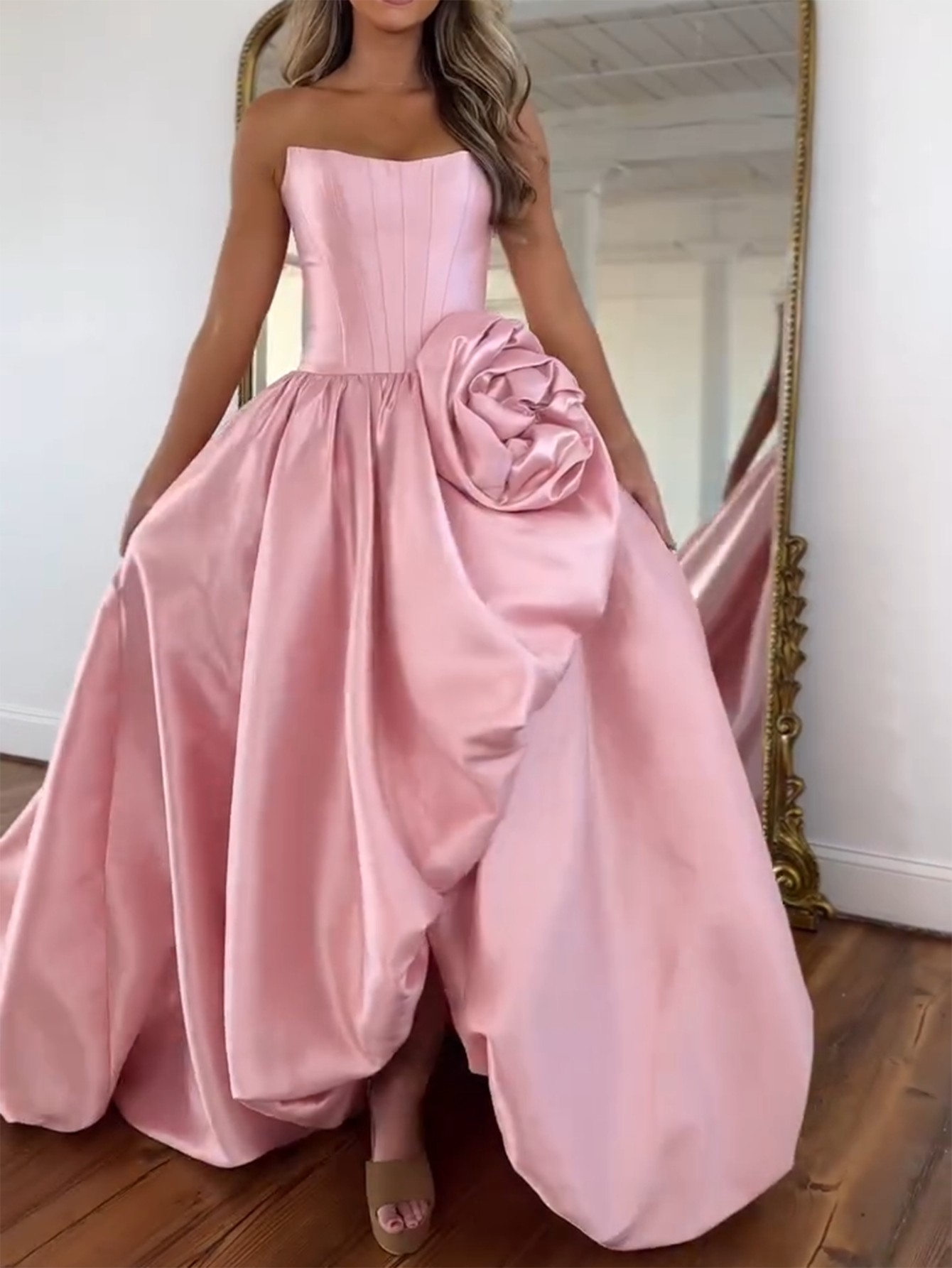 Derachable Hand Made Floral Bodice Ball Gown Prom Dress - Pink