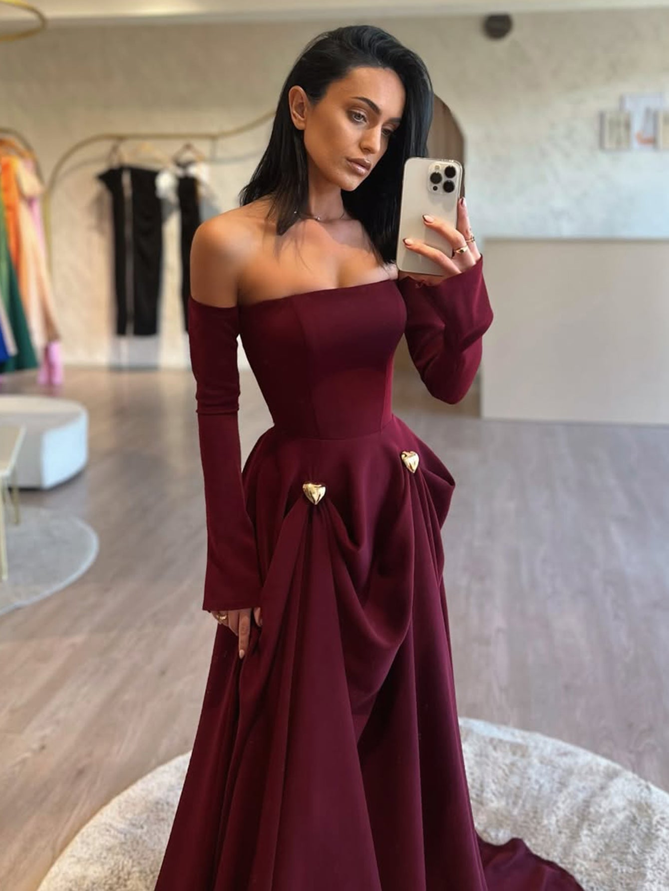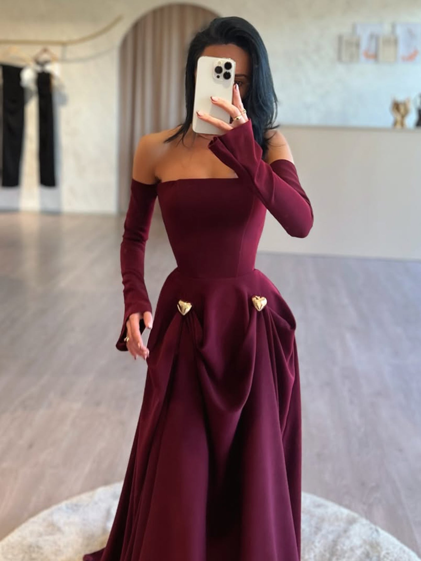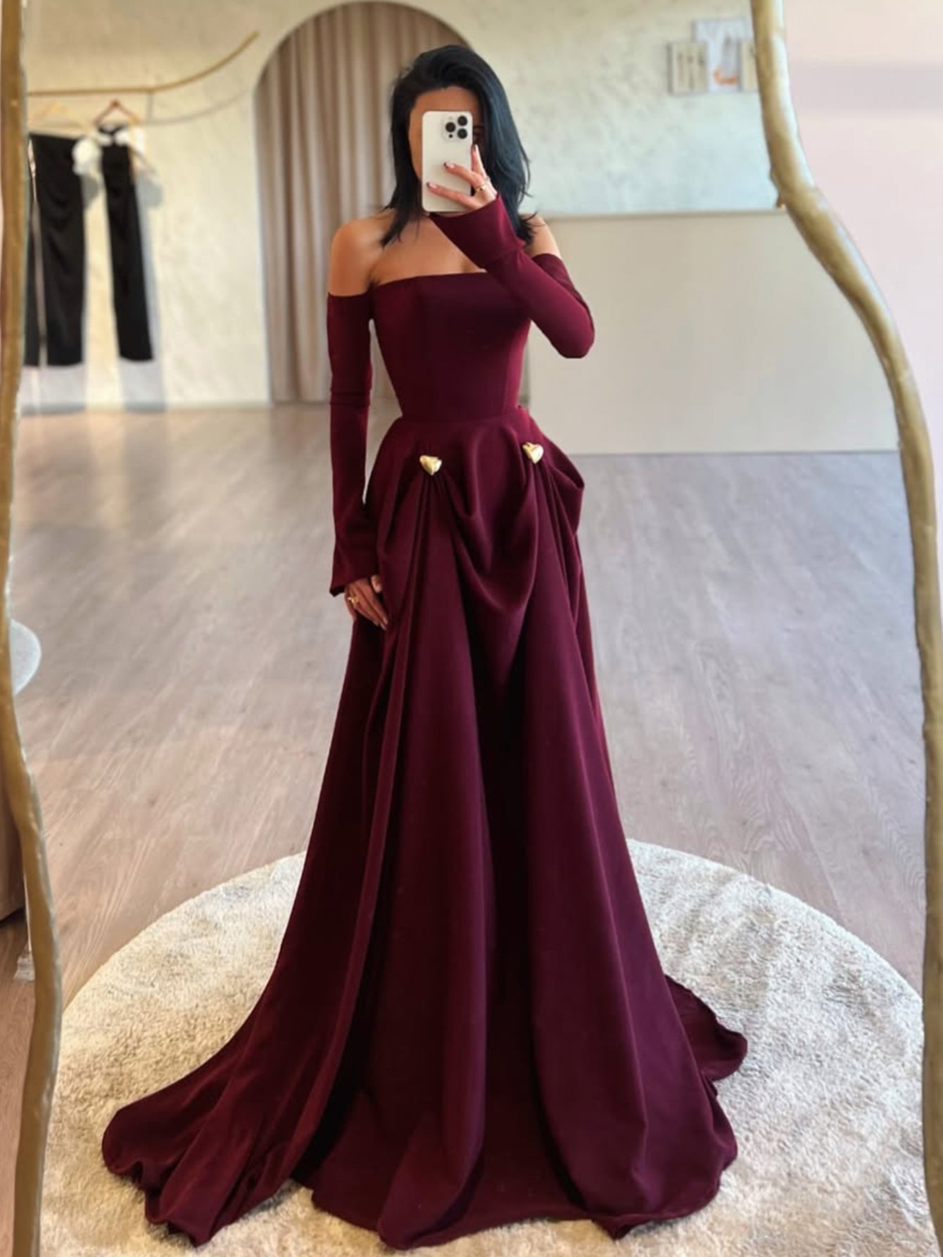 This satin ball gown features detachable sleeves and sweetheart decoration on the bodice. The strapless prom dress has a scoop neckline and pleated hem. Elegant formal dresses are ideal for party, evening or festivals.