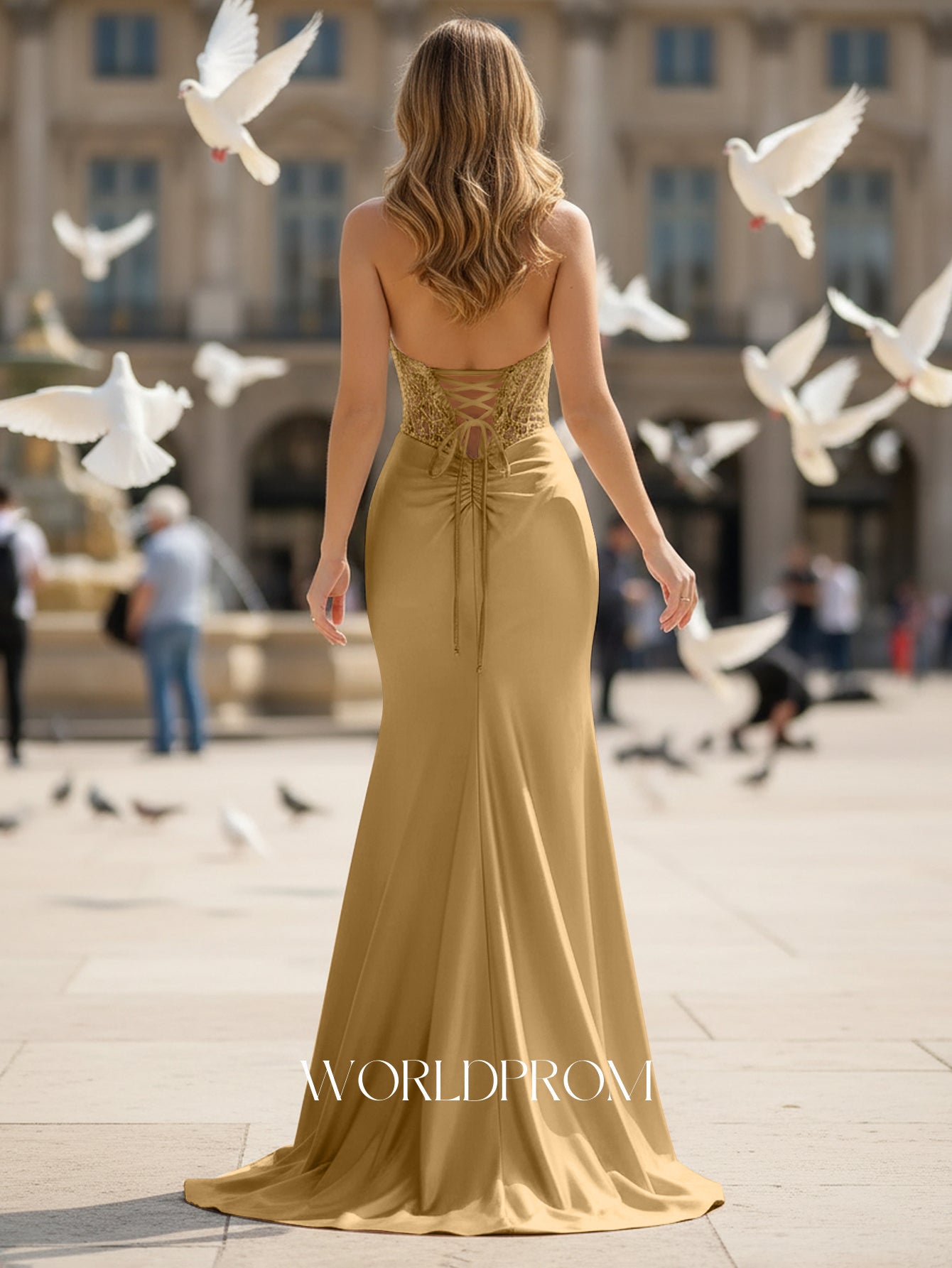This satin prom gown features embroidery cut front on the illusion bodice. The halter dress has a deep V-neckline and split hem. Worldprom mermaid prom dresses are ideal for party, evening or festivals.