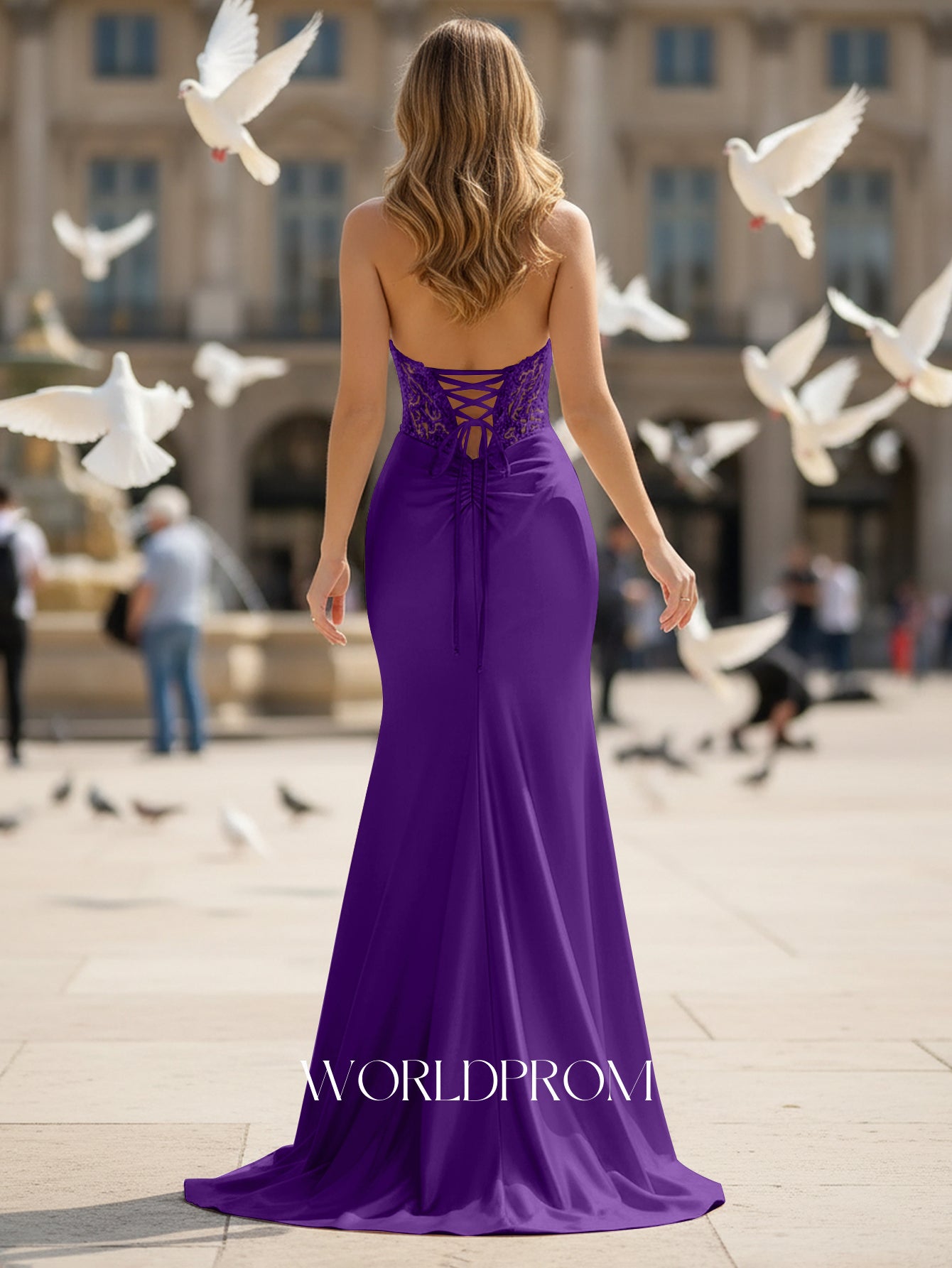 This satin prom gown features embroidery cut front on the illusion bodice. The halter dress has a deep V-neckline and split hem. Worldprom mermaid prom dresses are ideal for party, evening or festivals.