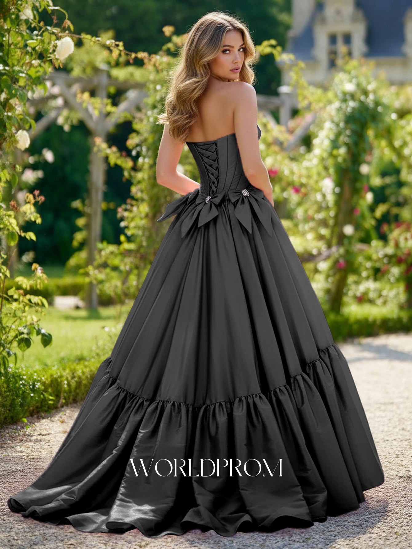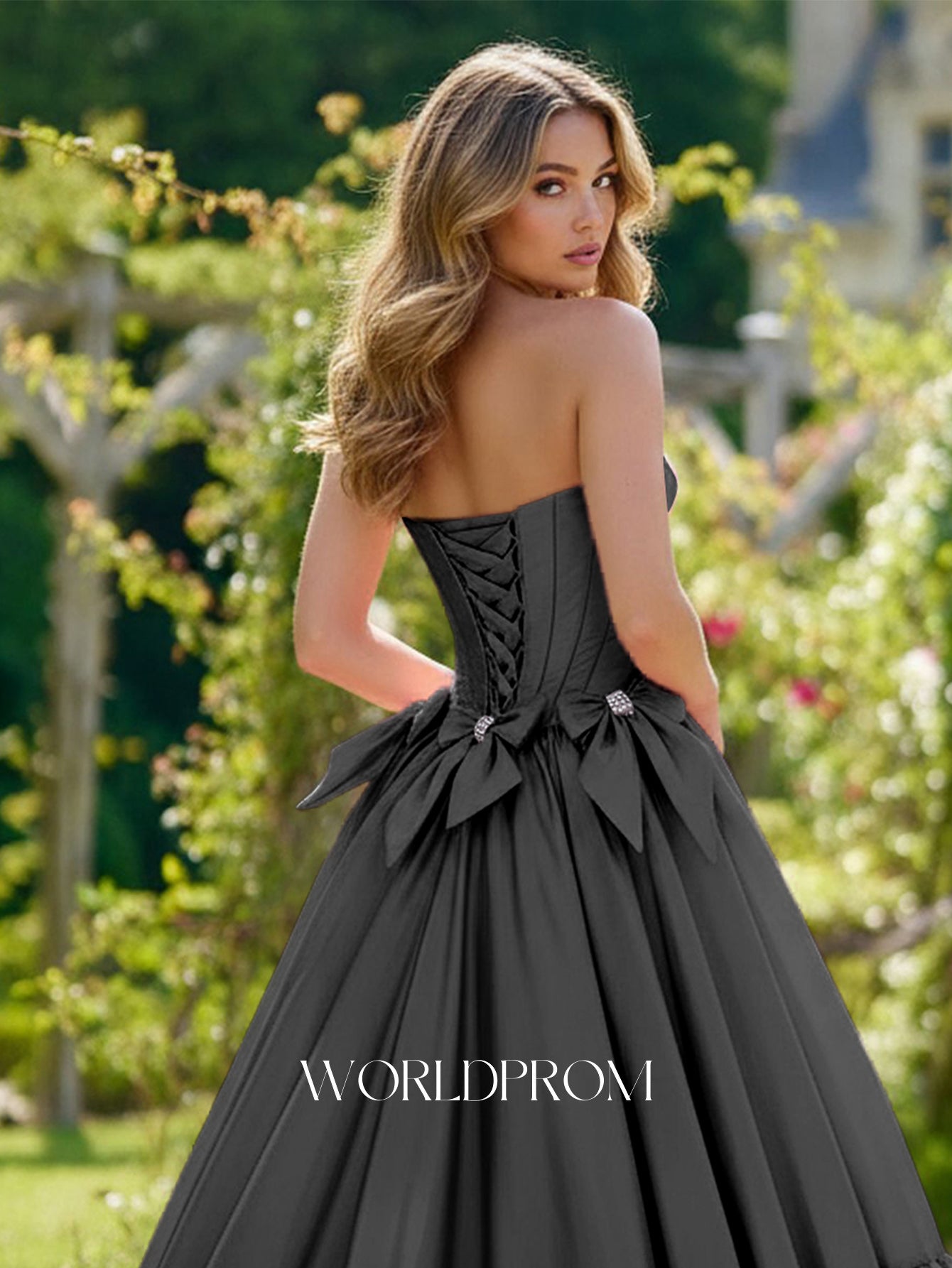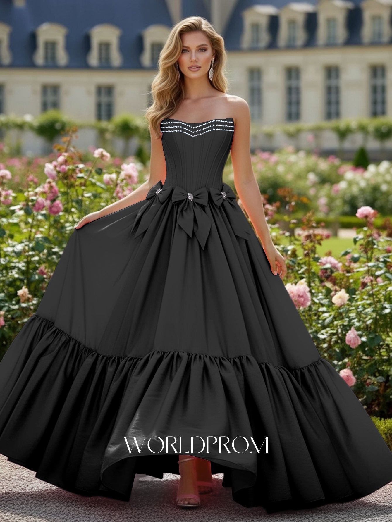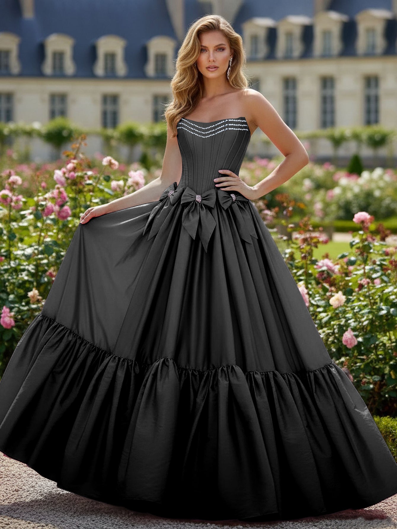 Gorgeous Crystal Boned Ball Gown Prom Dress with Bow - Black