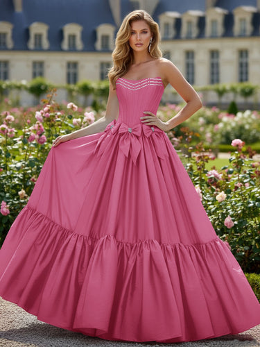 Gorgeous Crystal Boned Ball Gown Prom Dress with Bow - Hot Pink