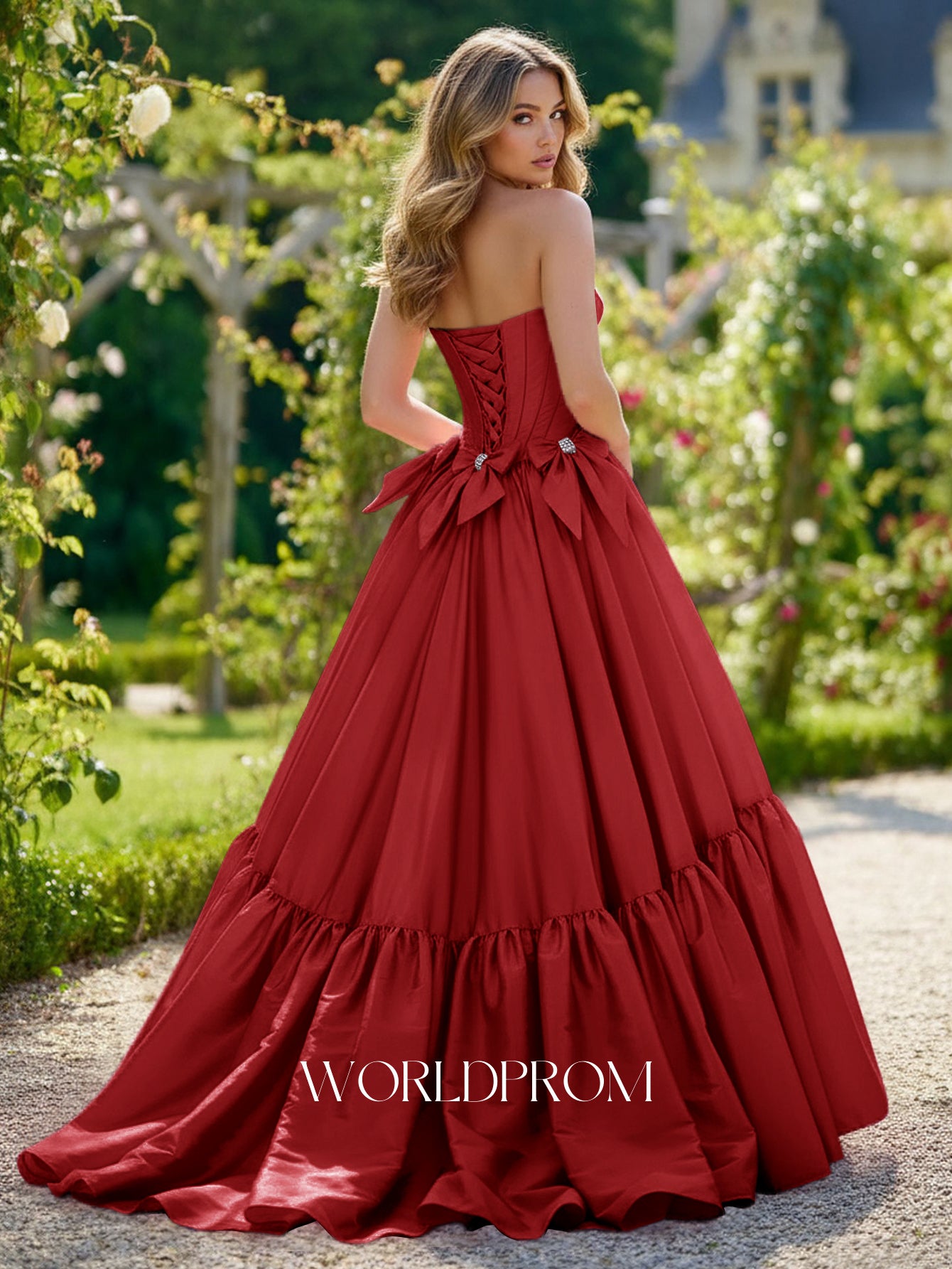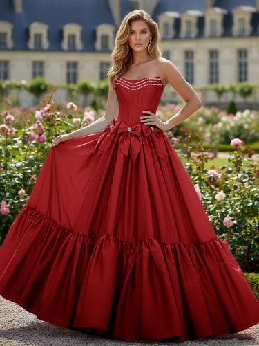 Gorgeous Crystal Boned Ball Gown Prom Dress with Bow - Red