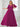 Half Sleeves V-Neck Pleated Sparkly Bridesmaid Dress - Fuchsia