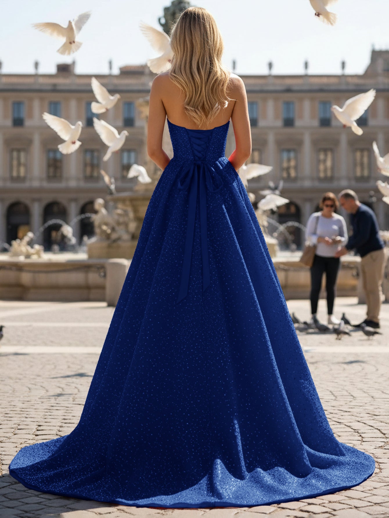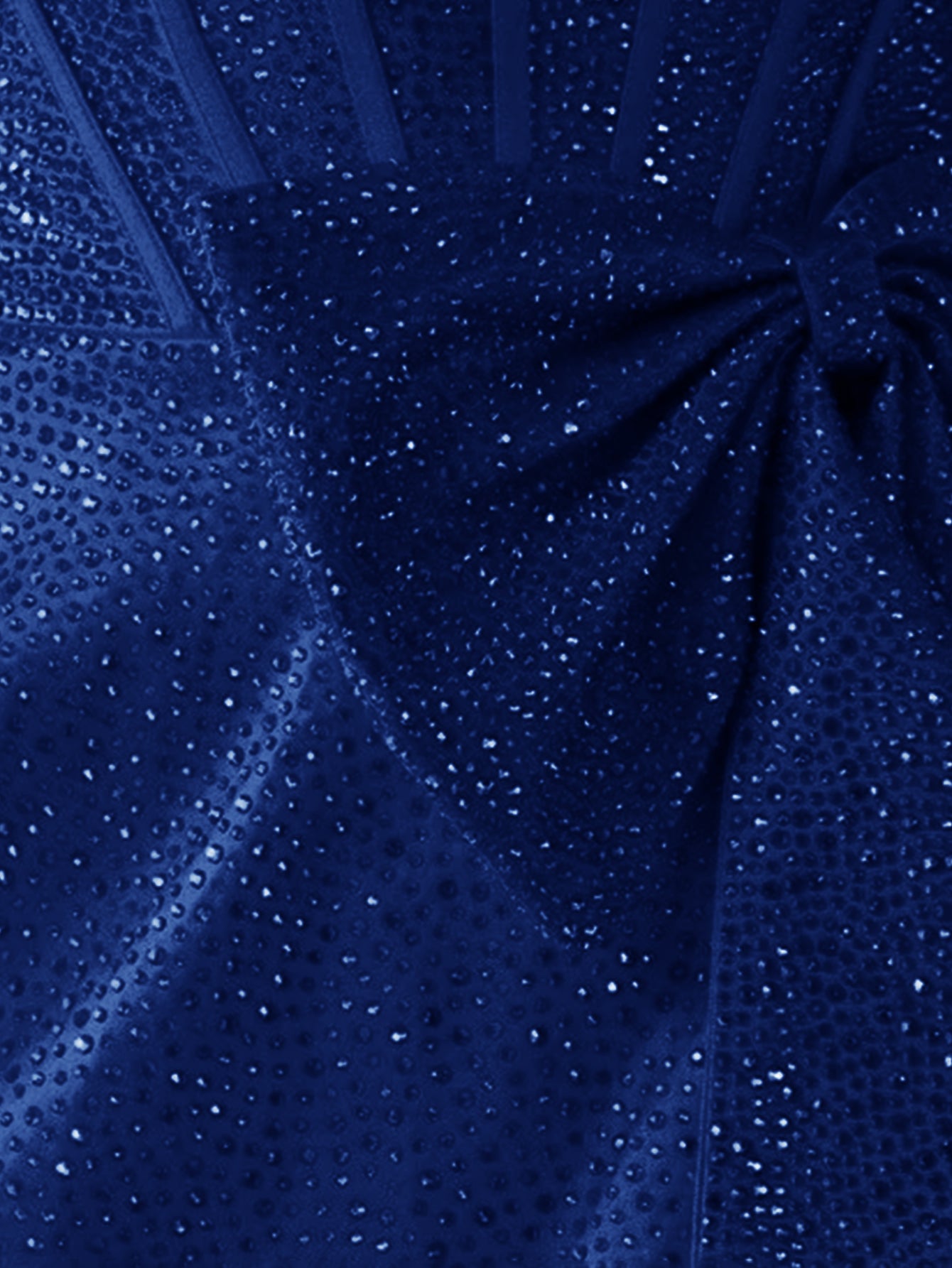 Halter Big Bow Sparkly Beading Lace Up Bodice Long Ball Gown Prom Dress - Royal Blue