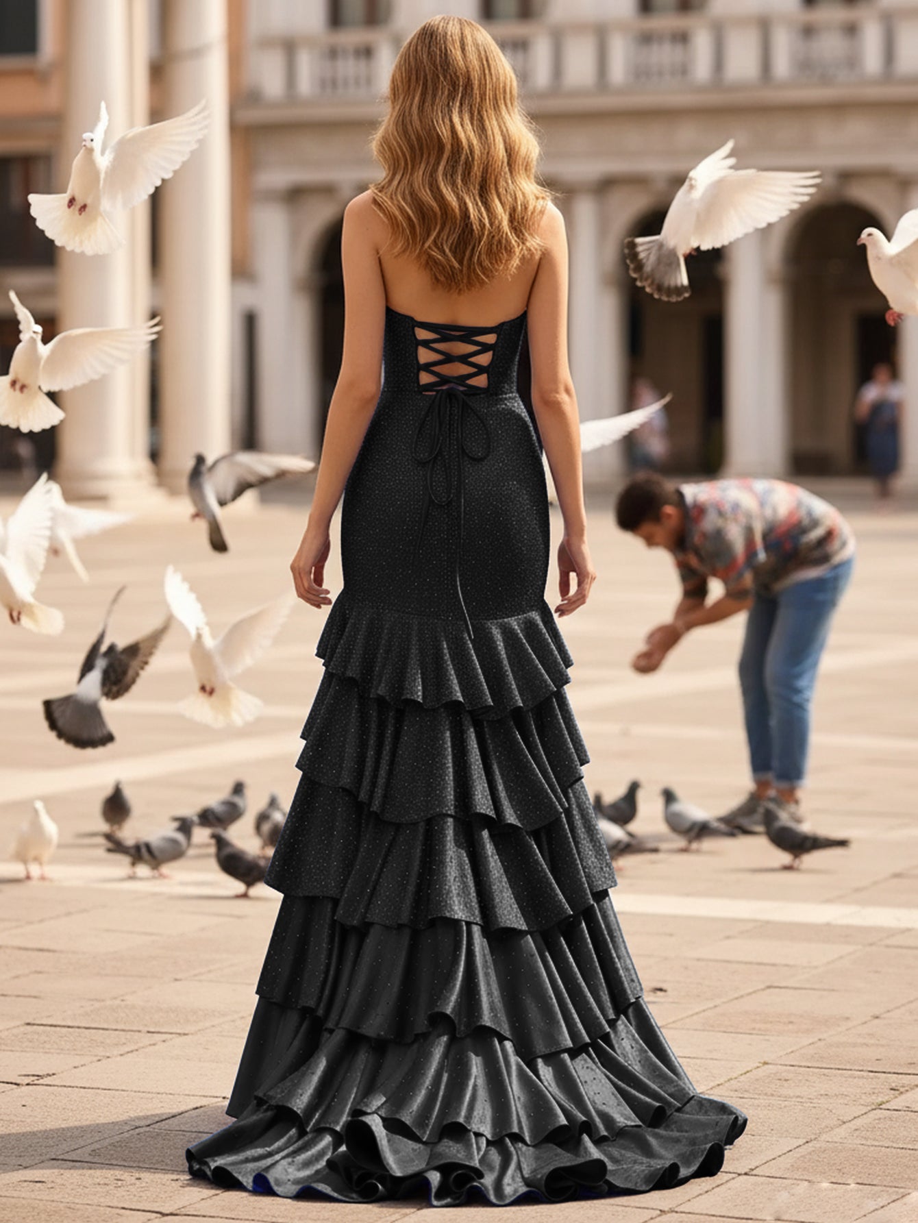 Details: Backless, Hot Fix, Crystal, Lace Up, Ruffled, Split