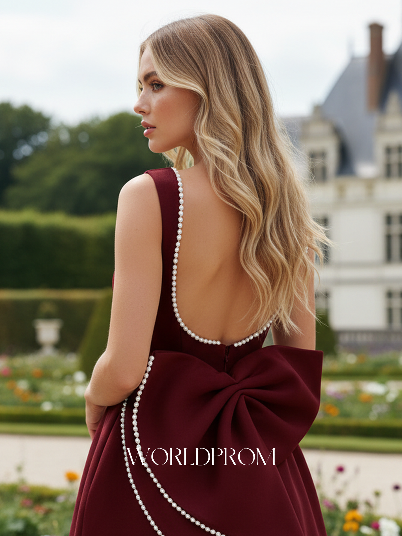 Details: Backless, Fitted Waist, Hand Beading, With Bow