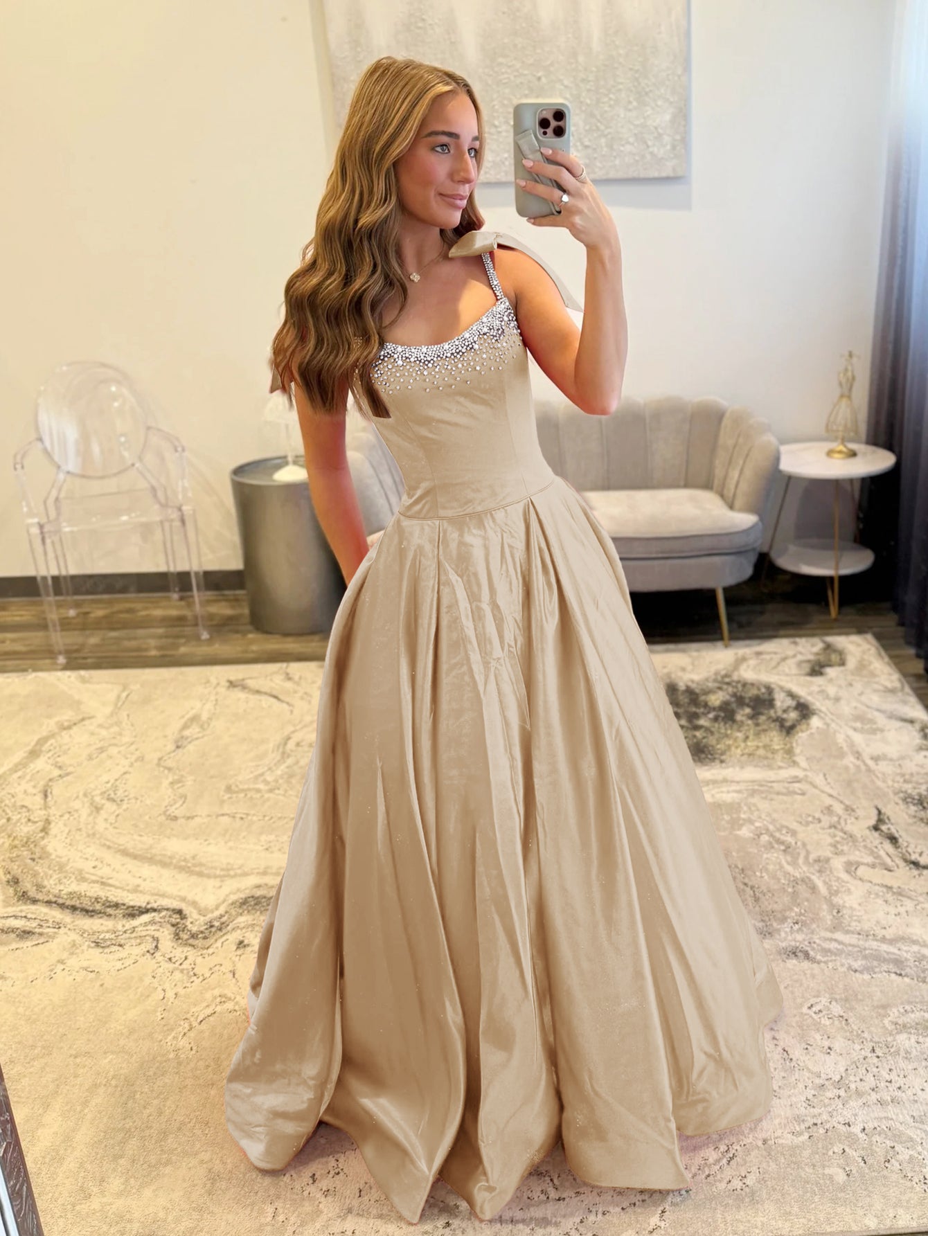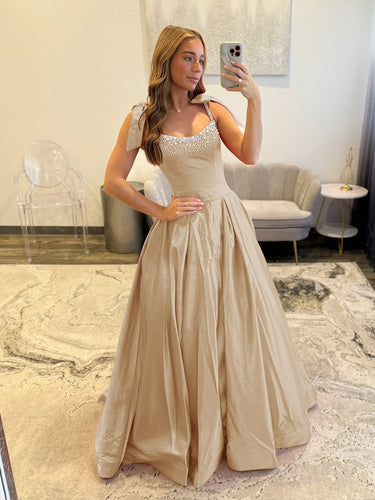 Hand Beading Bodice Ball Gown Prom Dress With Bows - Champagne