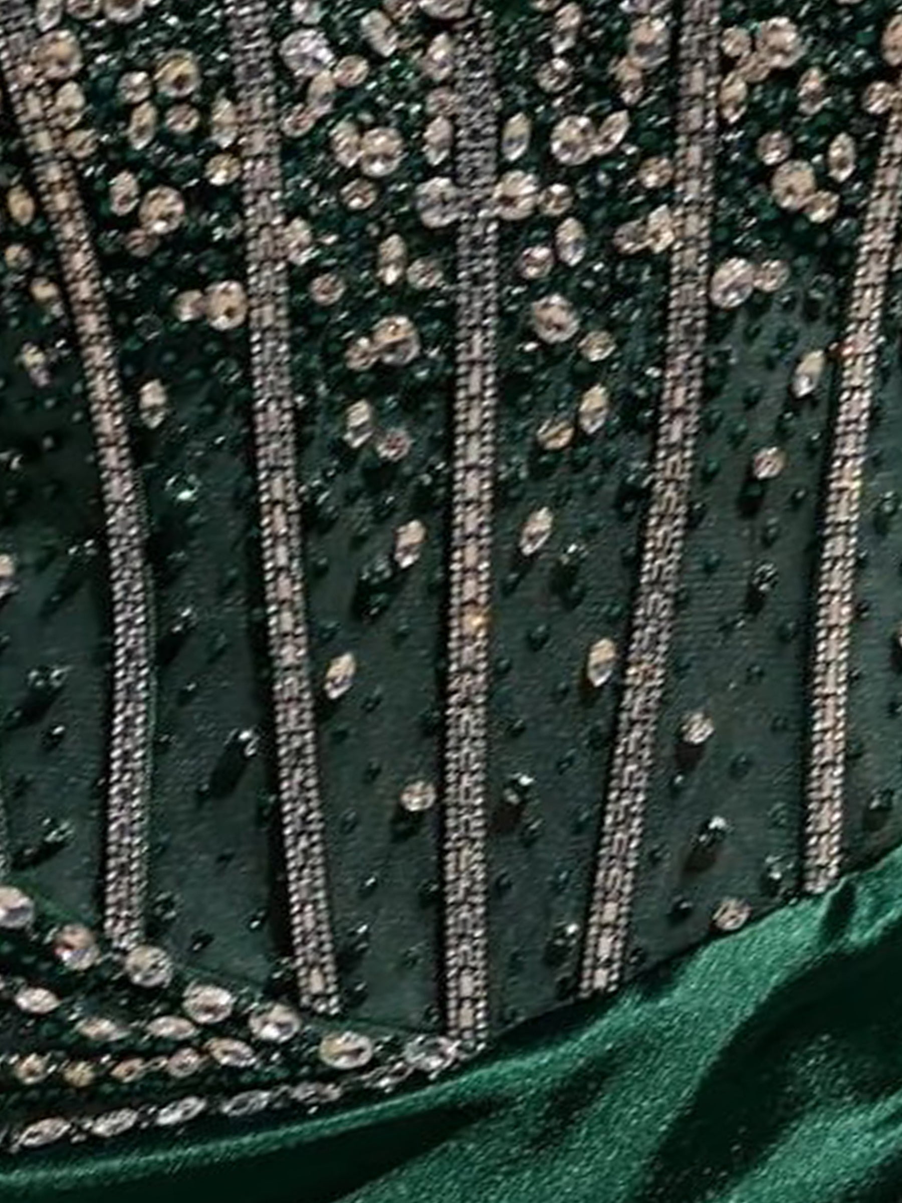 Hand Beading Crystal Illusion Boned Mermaid Prom Dress - Emerald Green