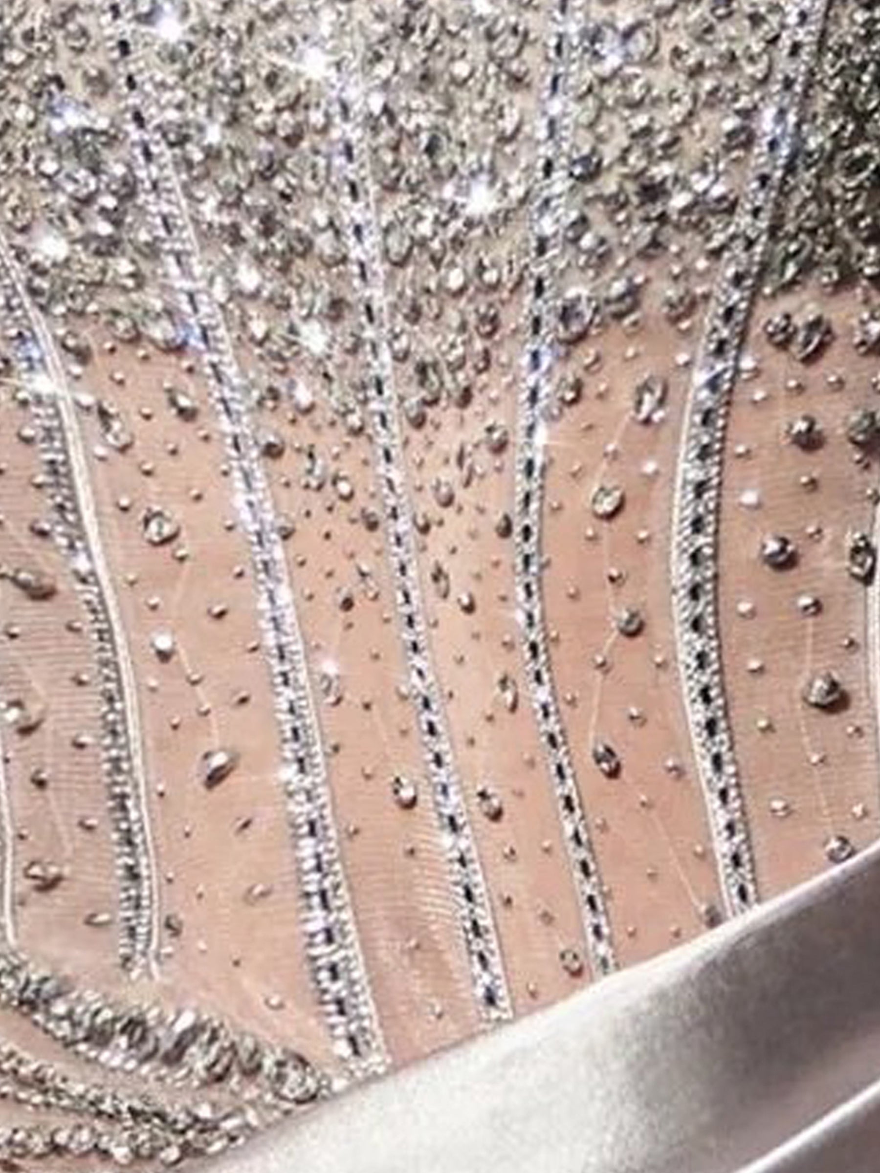 Hand Beading Crystal Illusion Boned Mermaid Prom Dress - Silver