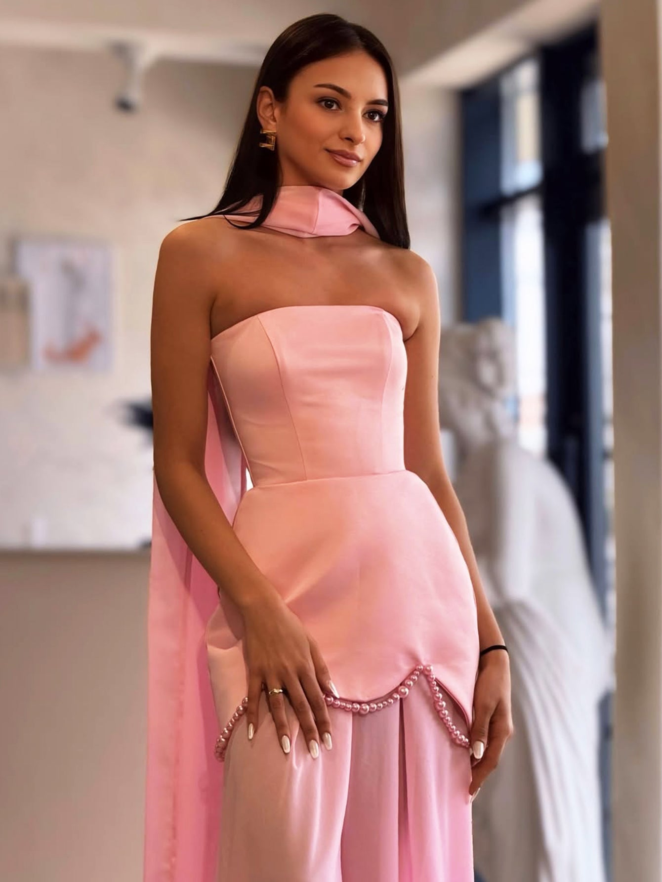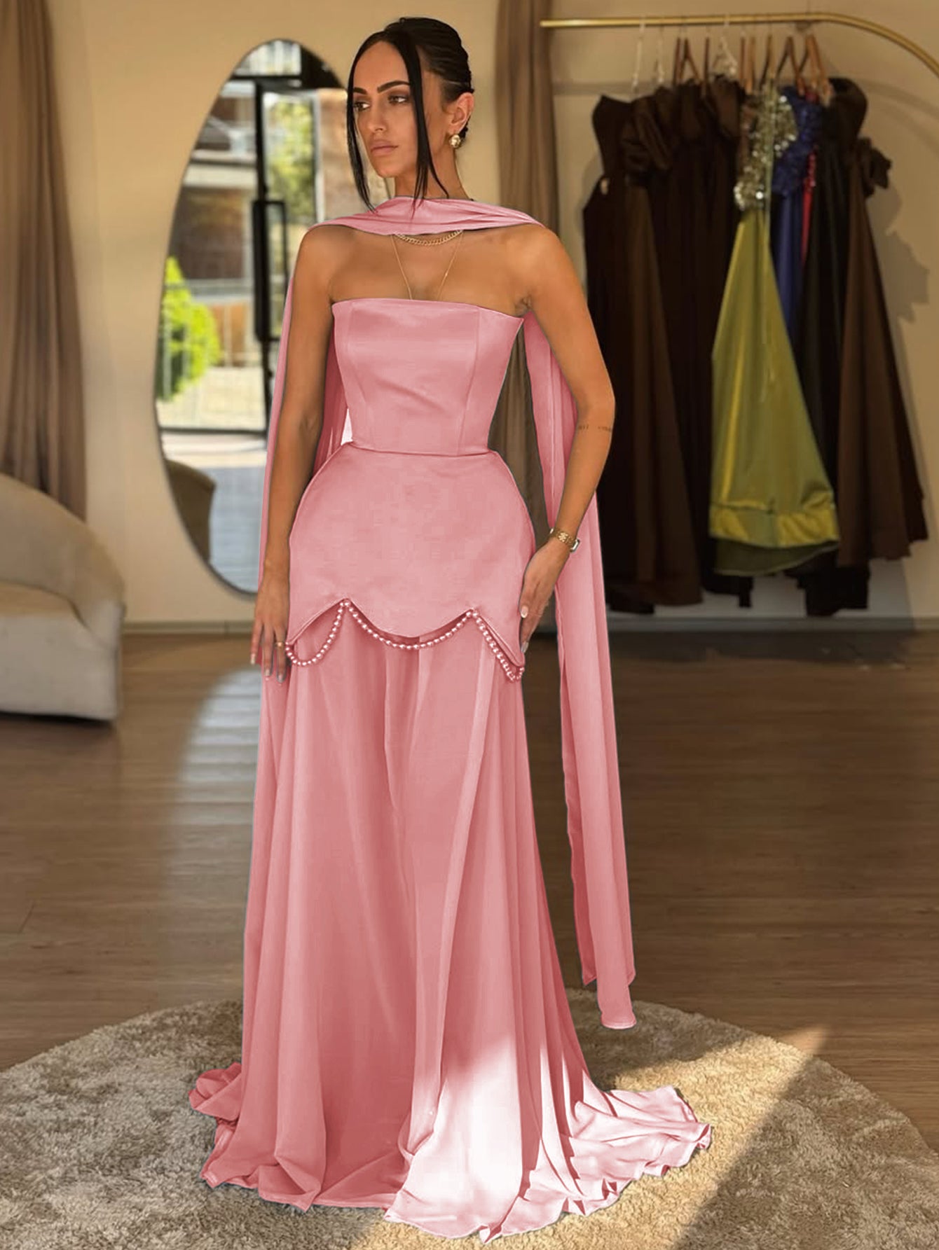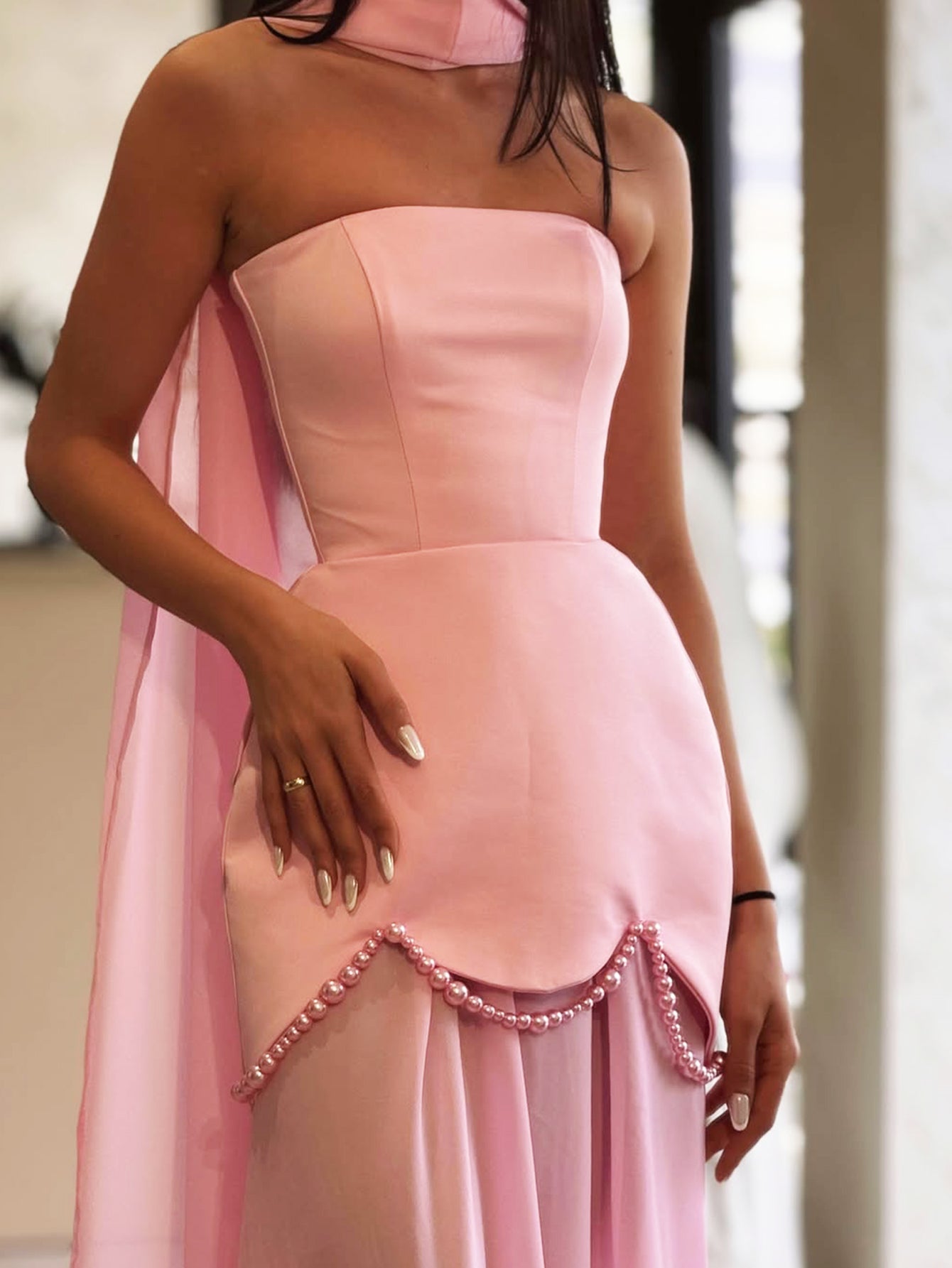 Hand Beading Strapless Prom Dress With Drop - Pink