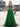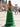 Hot Fix Crystal Illusion Long Layered Ruffle Hem Prom Dress With Bow - Emerald Green