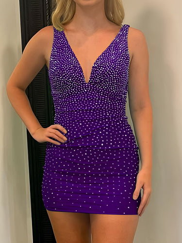Hot Fix Deep V-Neck Sheath Mini Prom Dress - Purple