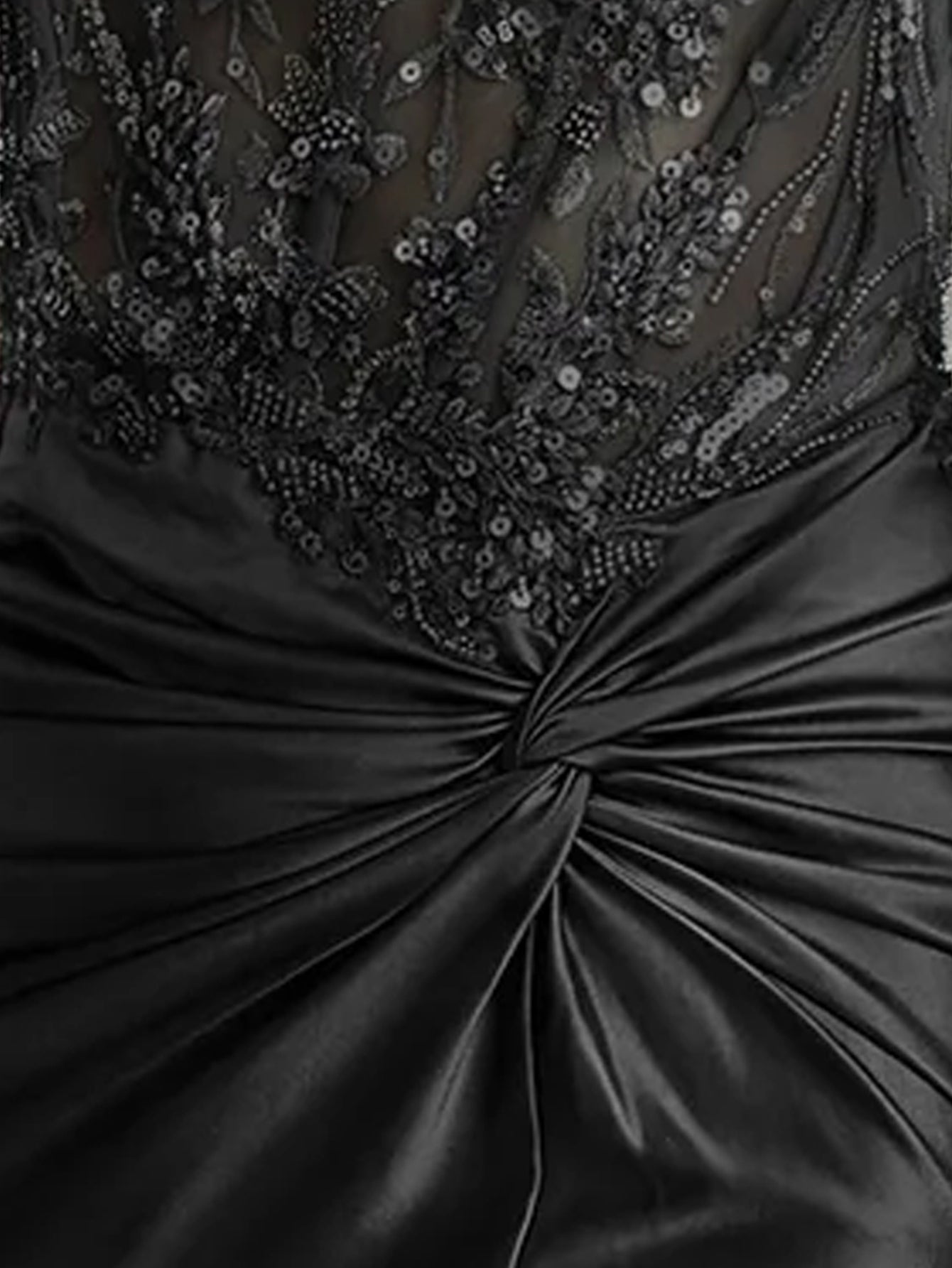 Lace Embroidery Twist Mermaid Long Prom Dress - Black