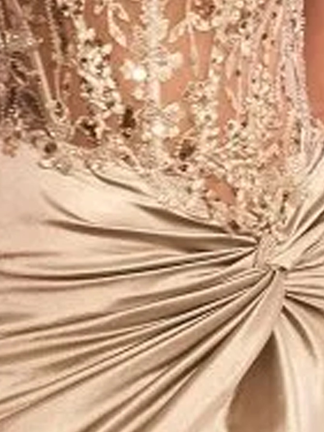 Lace Embroidery Twist Mermaid Long Prom Dress - Champagne