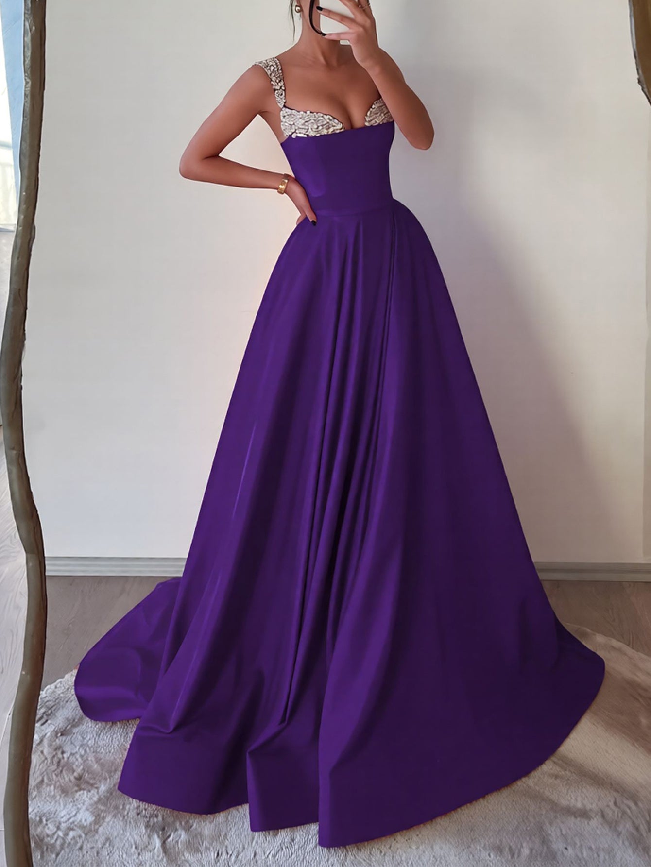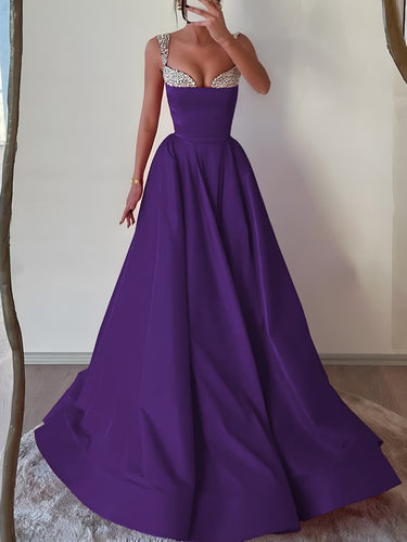 Luxury Crystal Ball Gown Long Prom Dress - Purple